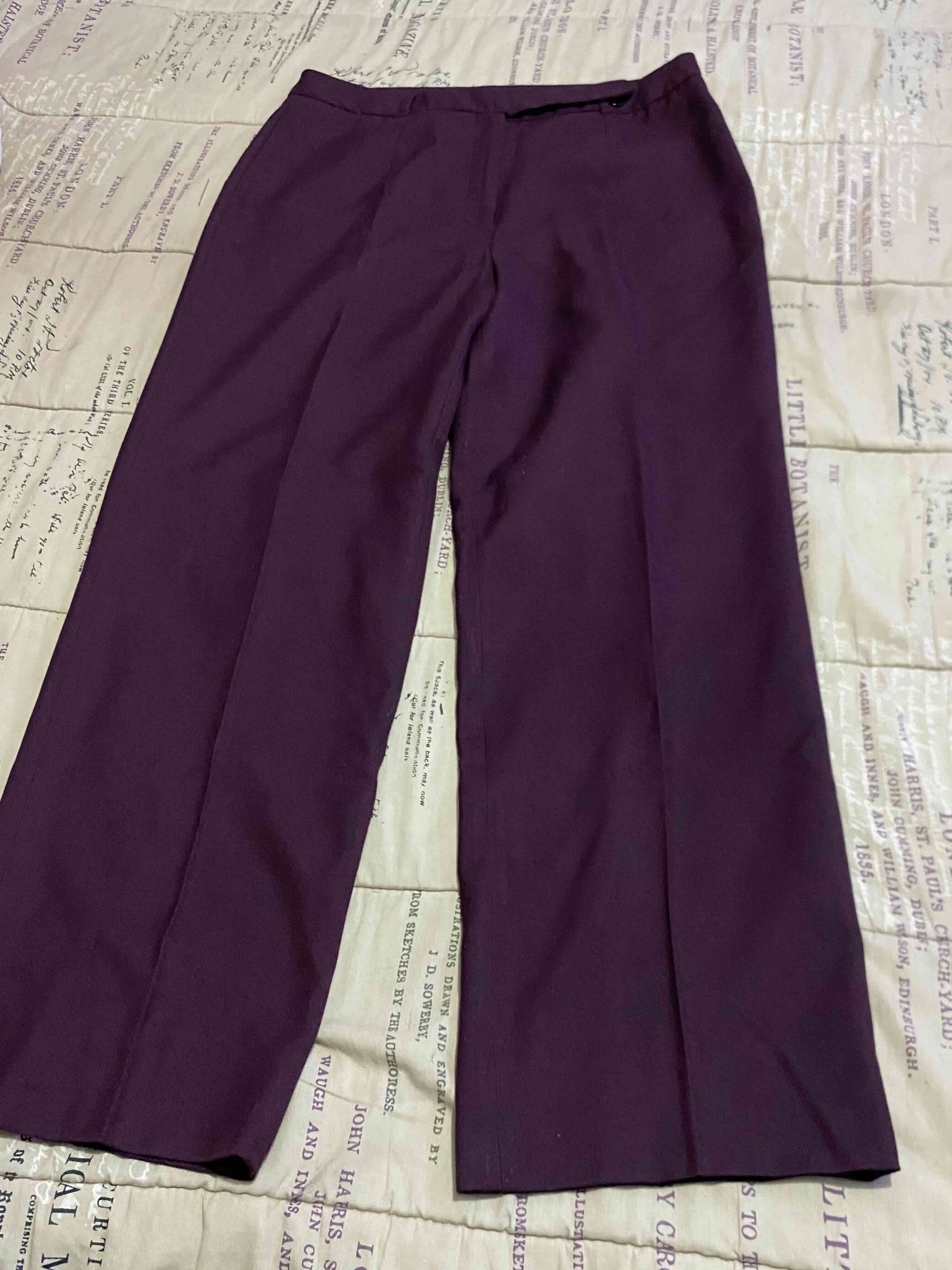 Pantalón largo morado talla 44 para mujer, ideal para ocasiones formales. En buen estado con leve uso.