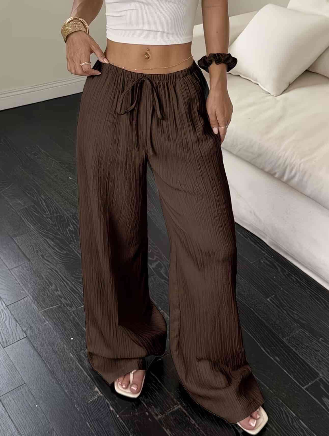 Pantalón estilo palazzo en color marrón oscuro, ideal para usar en salidas casuales. Se encuentra en buen estado general, con leves signos de uso. TALLA L