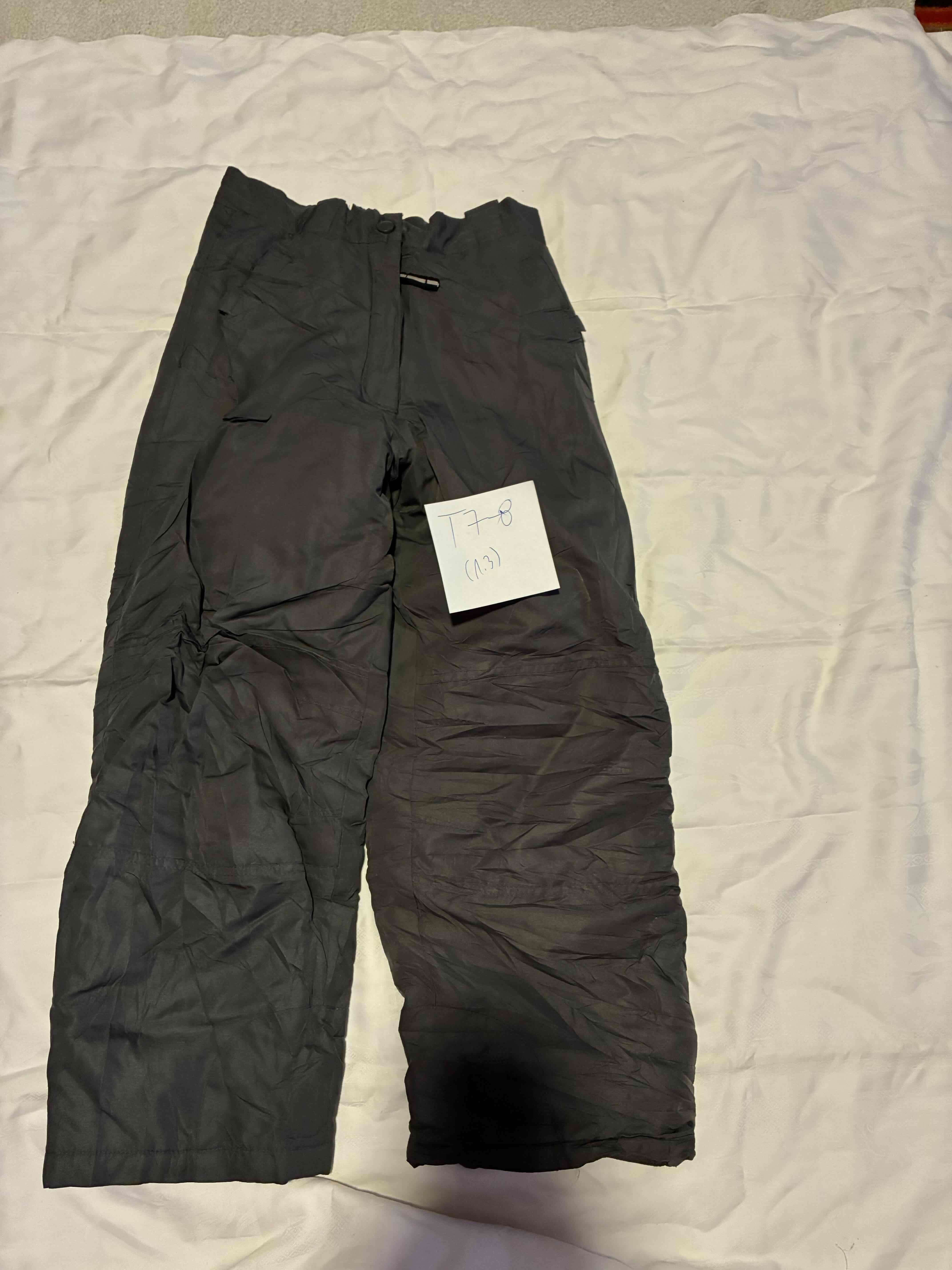 Pantalones oscuros, ideales para el invierno. En buen estado general, adecuados para niños de 7 a 8 años. Impermeable ideal para la nieve