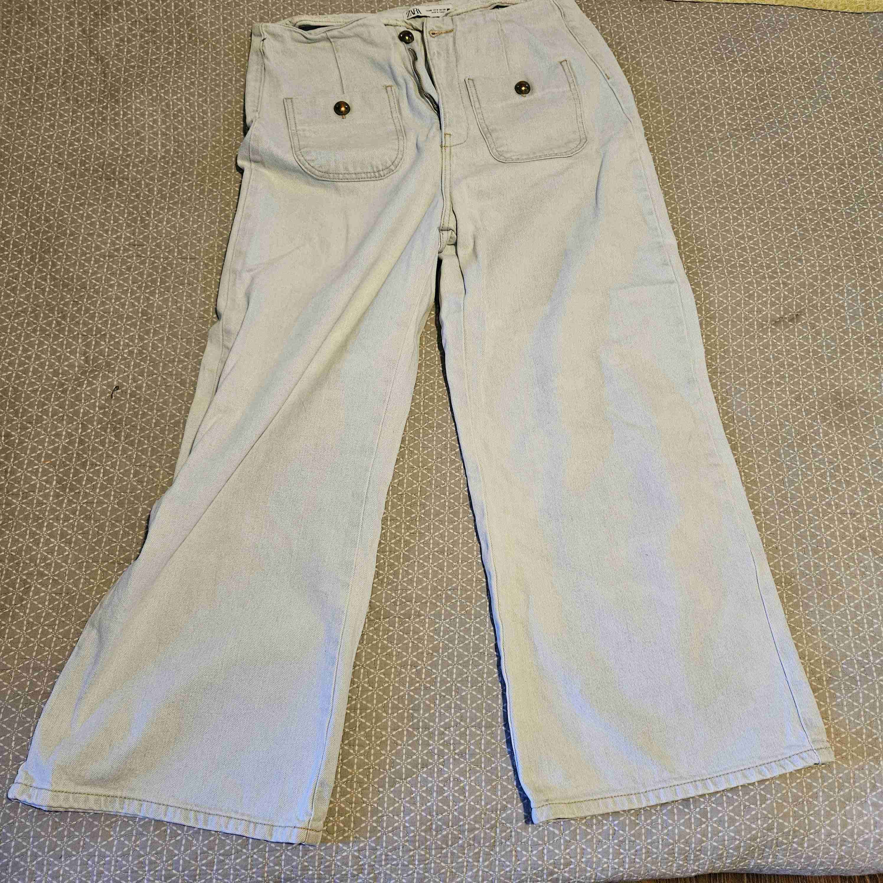 Pantalones color celeste en buen estado, estilo relajado con bolsillos frontales. Perfectos para un look casual.