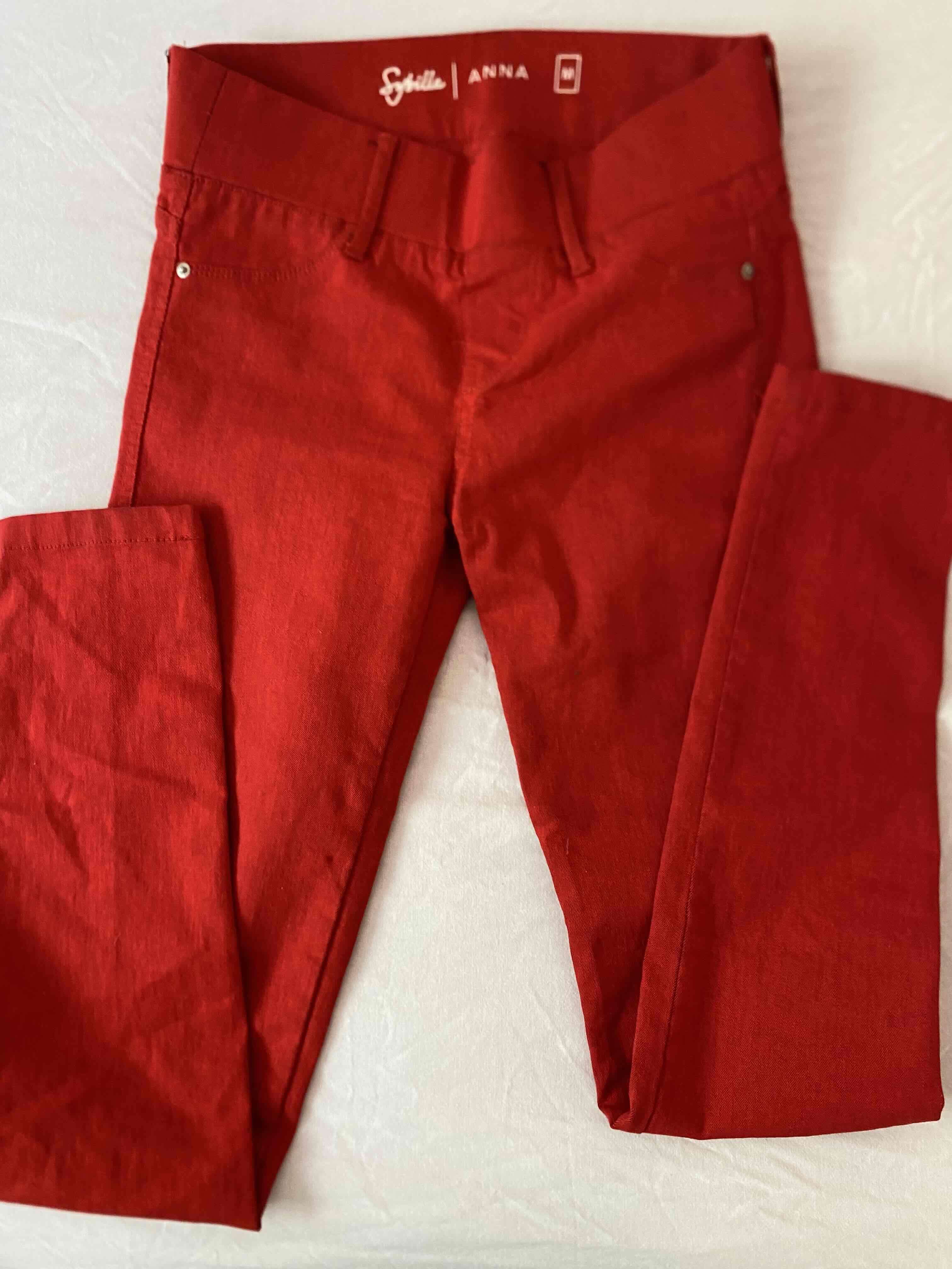 Pantalones rojos estilo pitillo tiro medio para mujer, talla M (un poco pequeño)