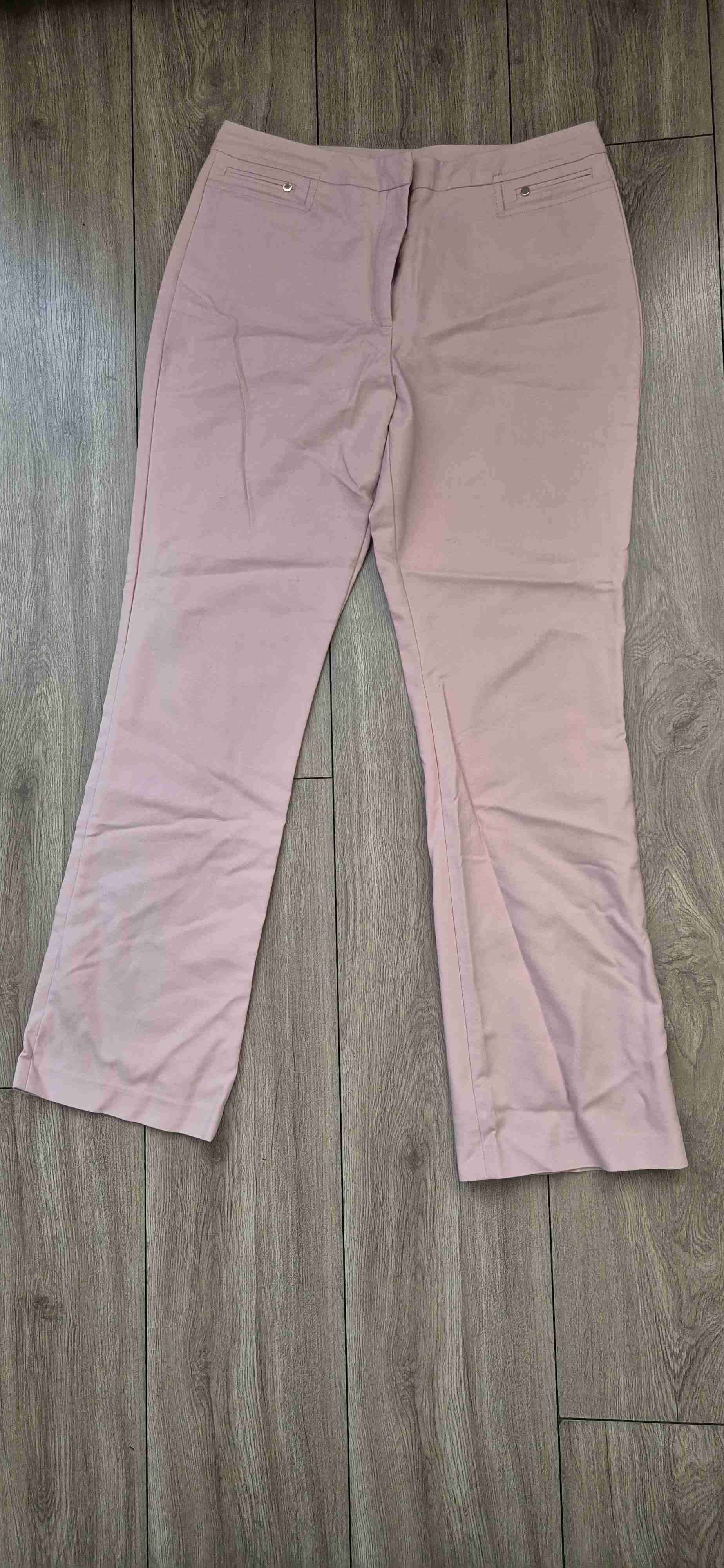 Pantalones de vestir en tono rosa suave, ideales para ocasiones especiales. En buen estado con signos leves de uso.