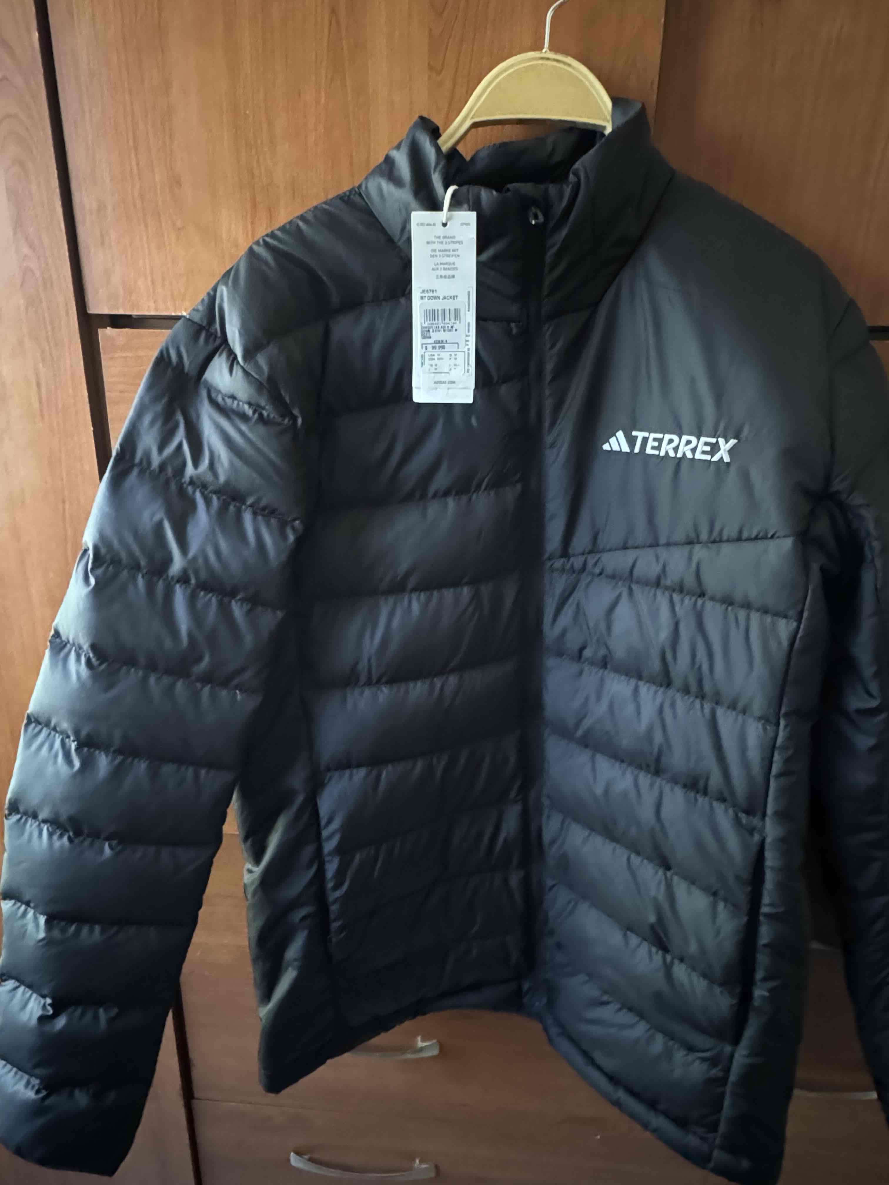 Chaqueta hombre abrigadora Terrex en negro, ideal para actividades al aire libre. Nueva con etiqueta. Talla M