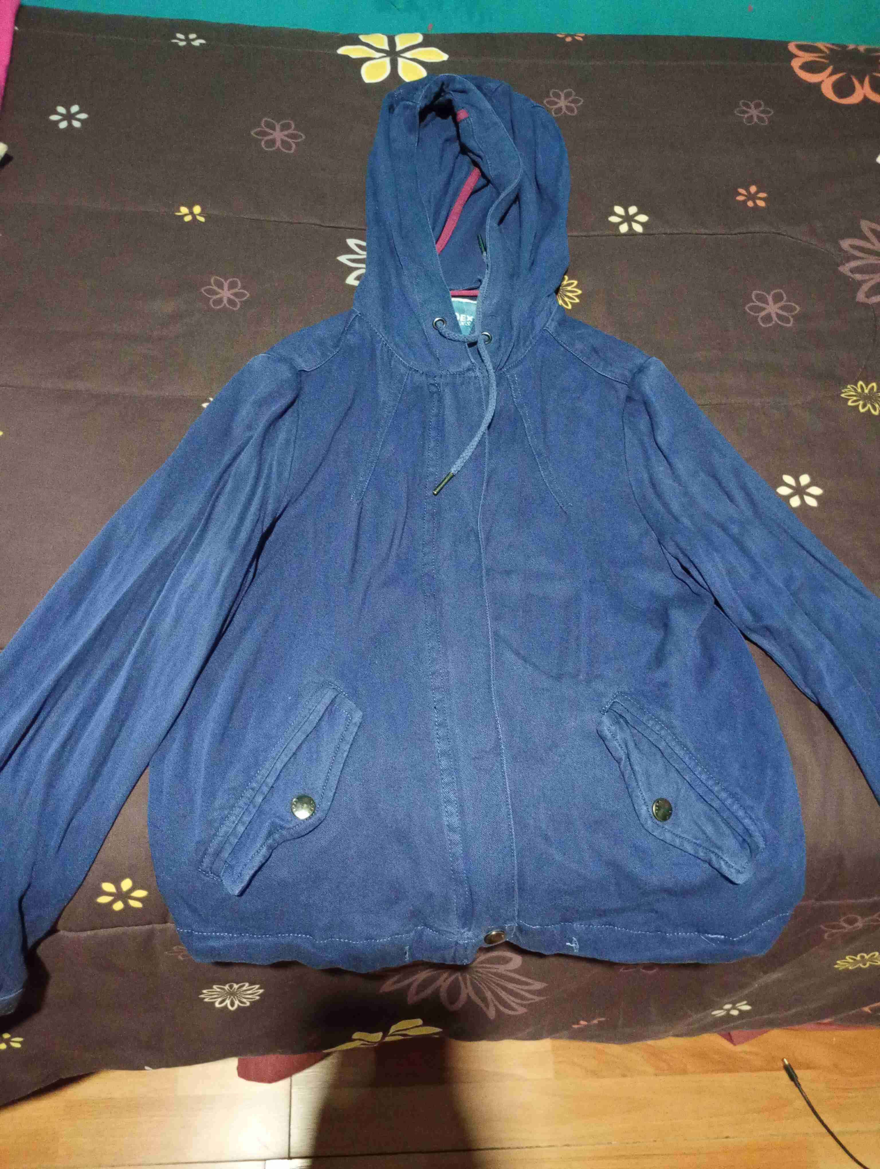 Vendo linda chaqueta liviana tipo parka de la marca Index. Color azul marino, ideal para el uso diario o para protegerse del viento. Es una prenda muy cómoda y versátil. Detalles: Viene con gorro ajustable, cierre frontal y botones a presión. Tiene bolsillos laterales con botón.