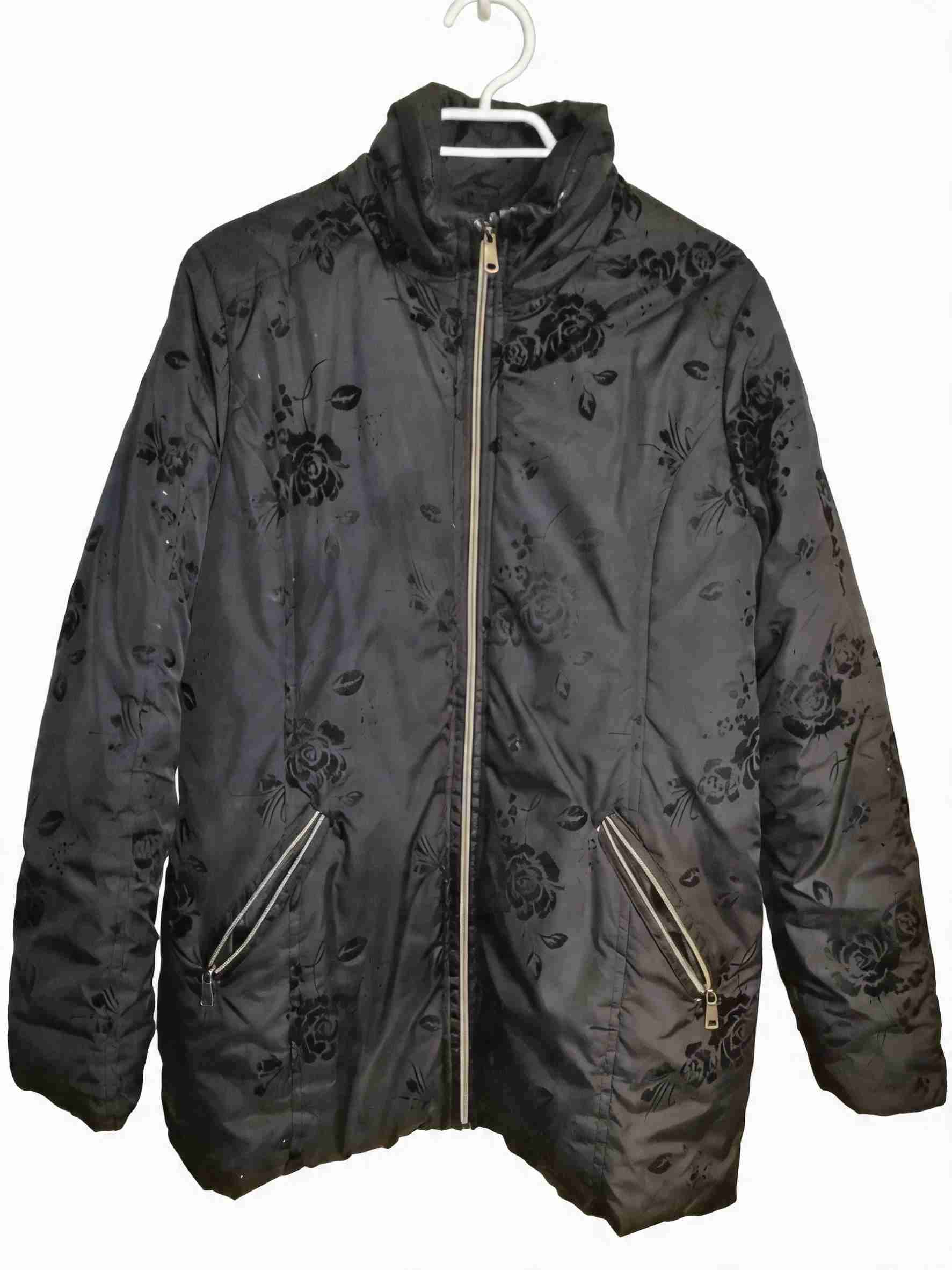 Parka mujer talla L. Color negro con elegante diseño floral, perfecto para el invierno. Buen estado, ideal para uso diario. Se usó dos veces, está en perfecto estado.