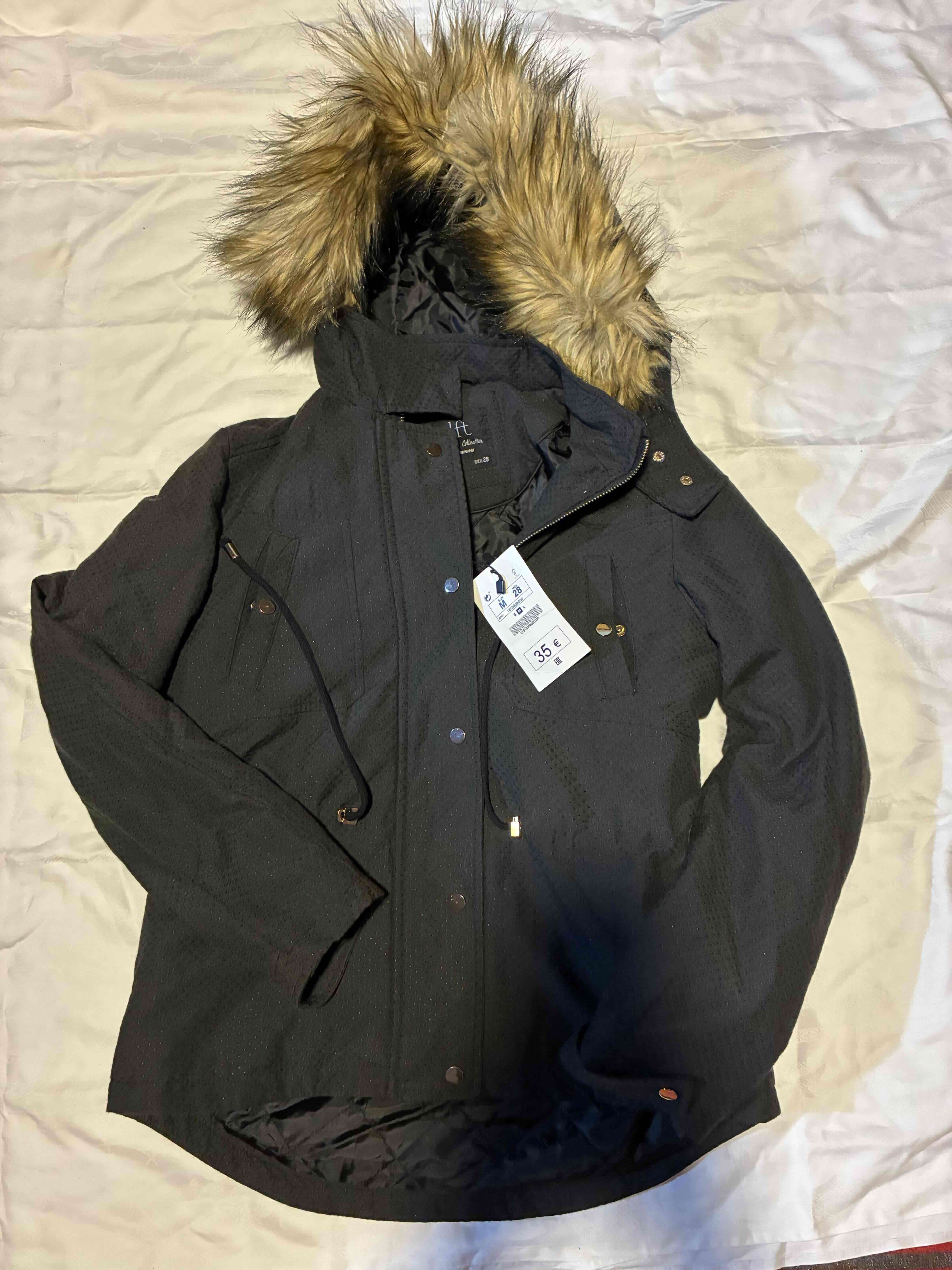 Parka negra con capucha de pelo talla M