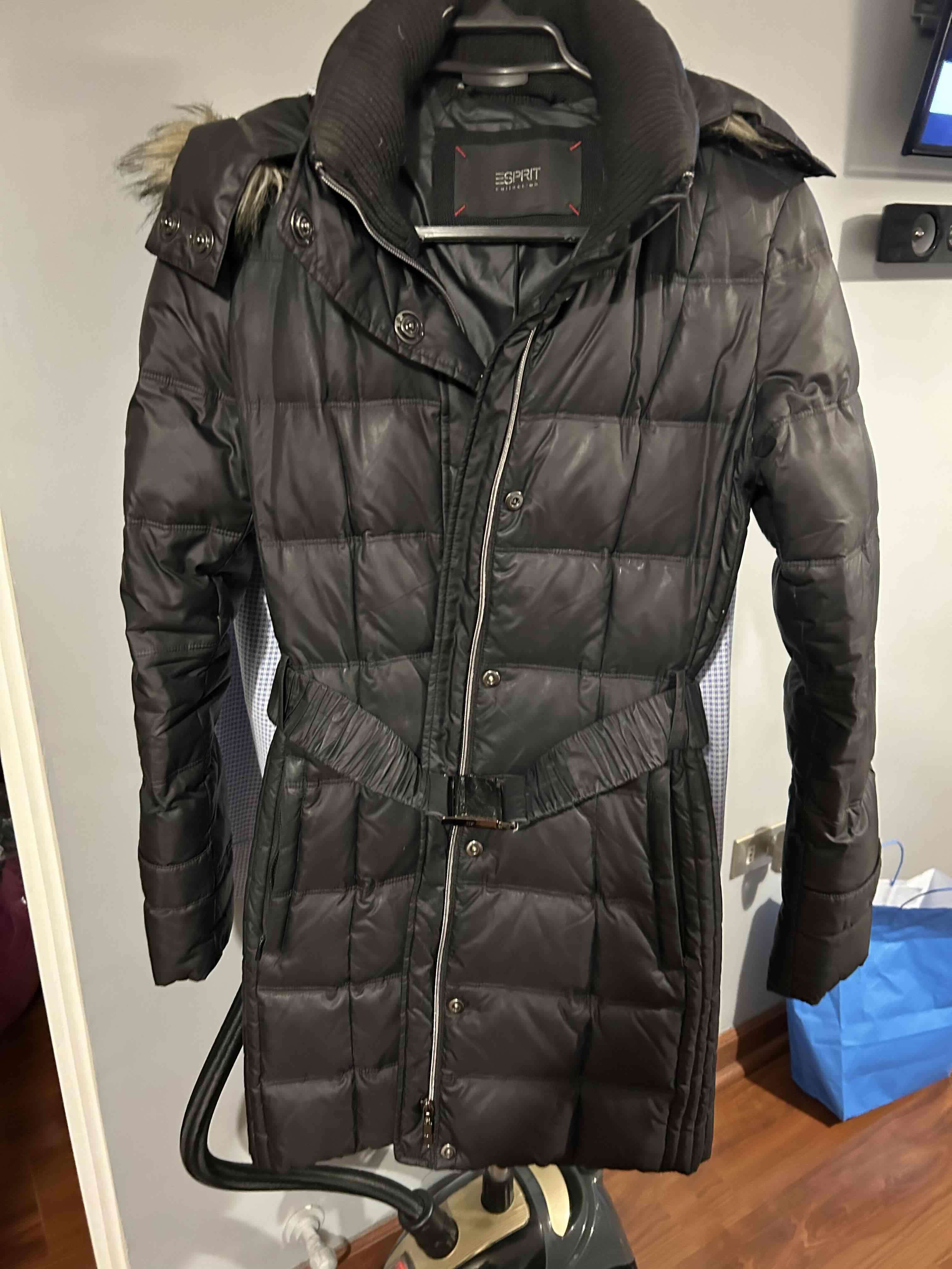 Abrigo largo negro, ideal para invierno. Capucha con detalle de pelo y cierre. Buen estado, cálido y abrigador.Pluma