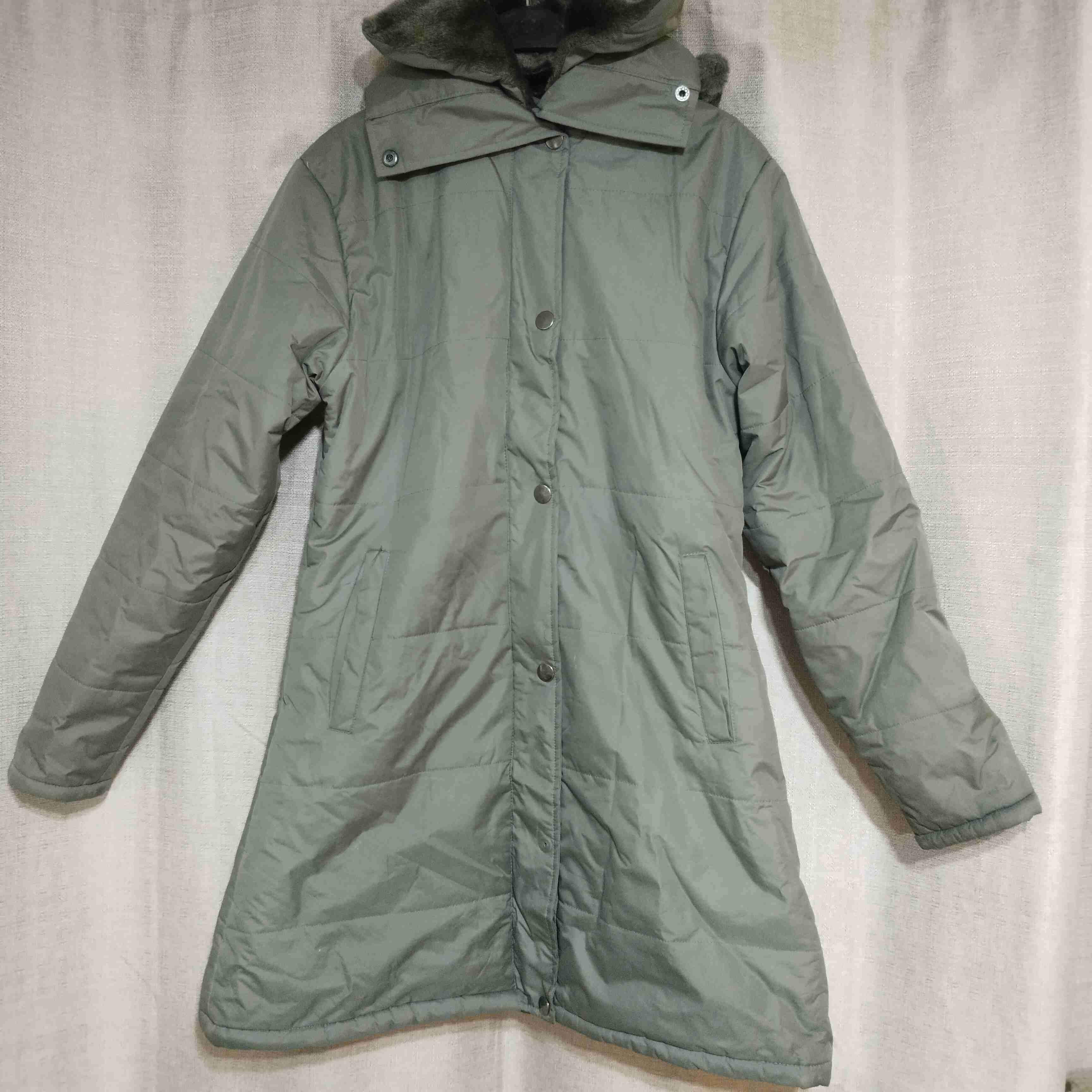 Parka abrigada ideal para días frios impermeable. Gorro y cuello de piel desmontable, perfecta para el invierno. Le falta último broche.
