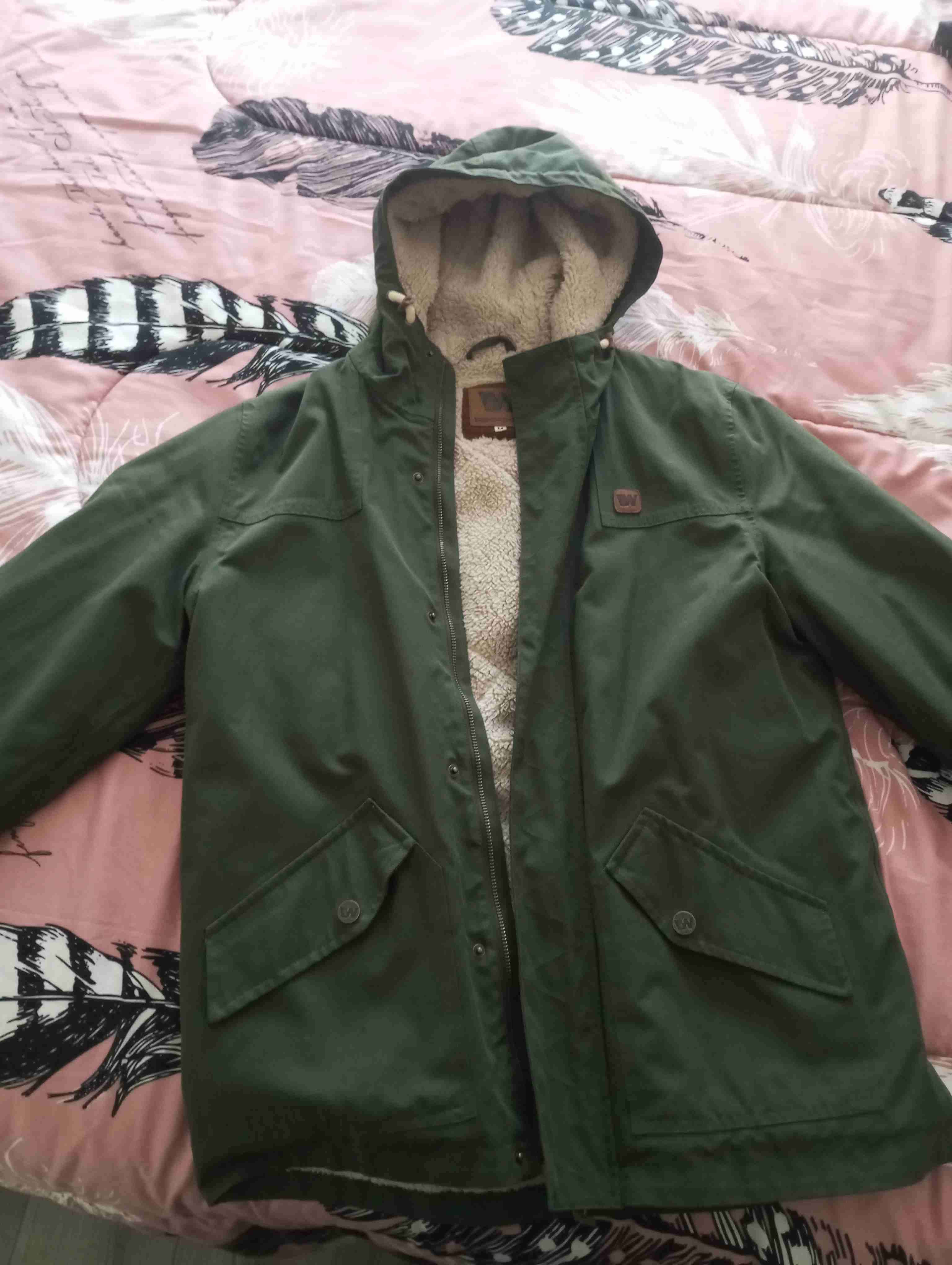 Parka verde en buen estado, perfecta para días fríos. Interior afelpado para mayor calidez.