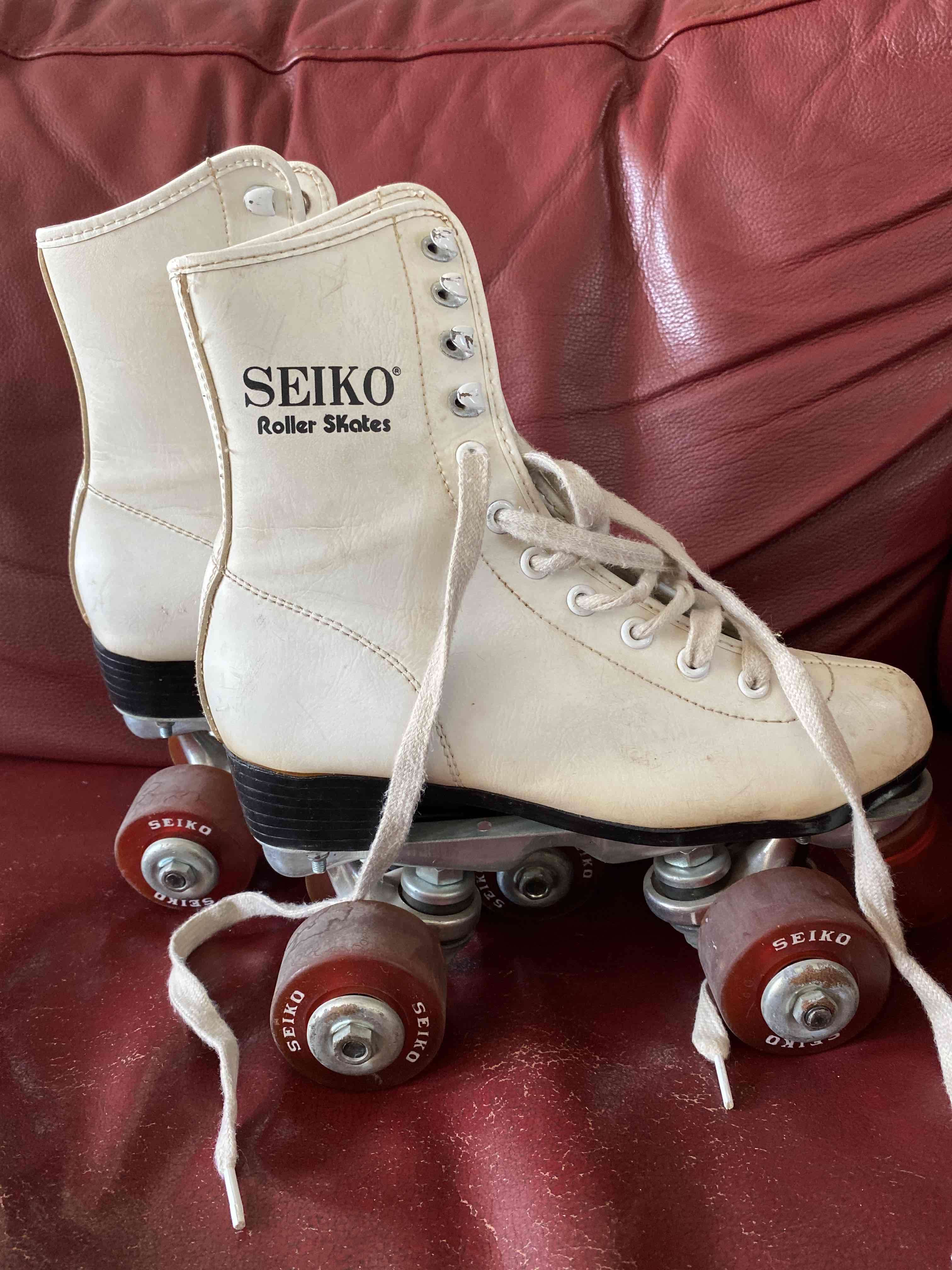 Patines retro Seiko en color blanco, perfectos para paseos al aire libre. En buen estado con signos leves de uso.