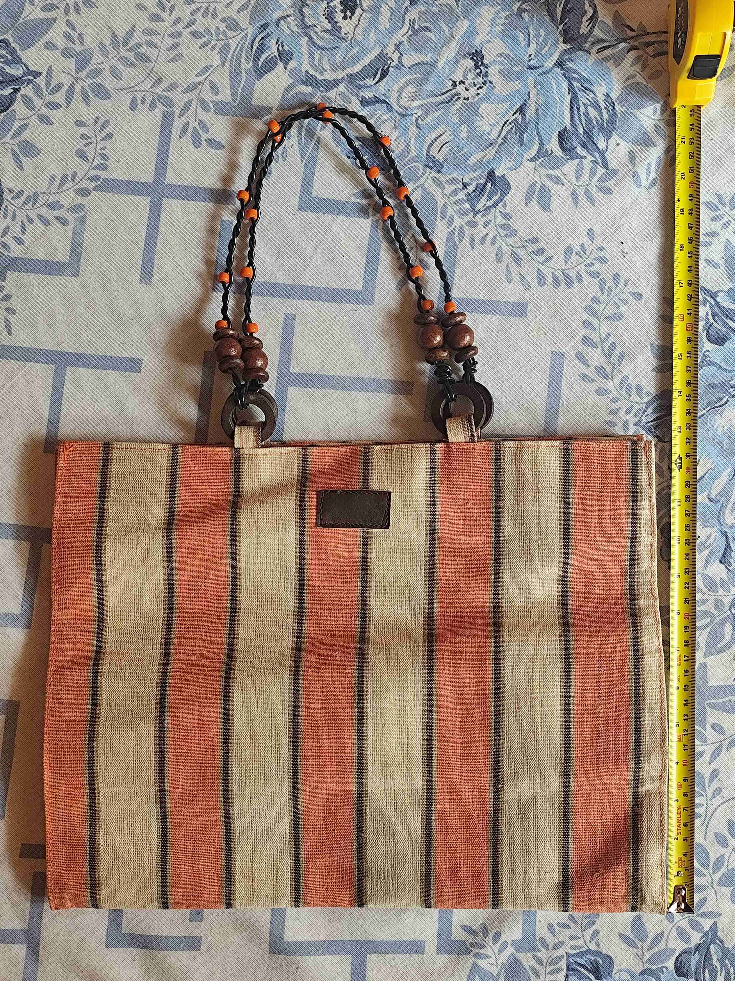 Bolso de tela con diseño a rayas y asas decoradas. Excelente calidad firme e ideal para uso diario. Nuevo pero sin etiqueta.