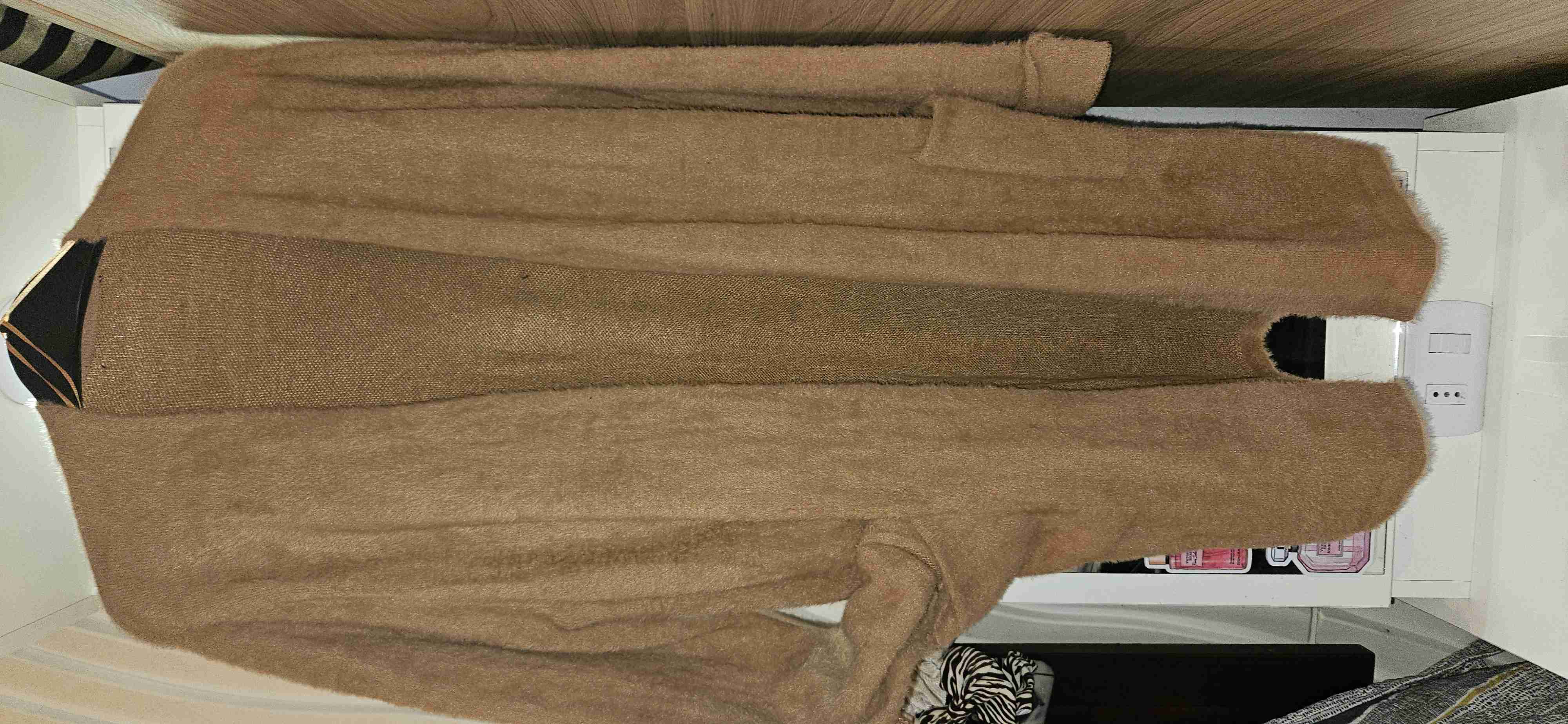 Cardigan talla L, color beige camel, de estilo relajado, en buen estado. Perfecto para días fríos.