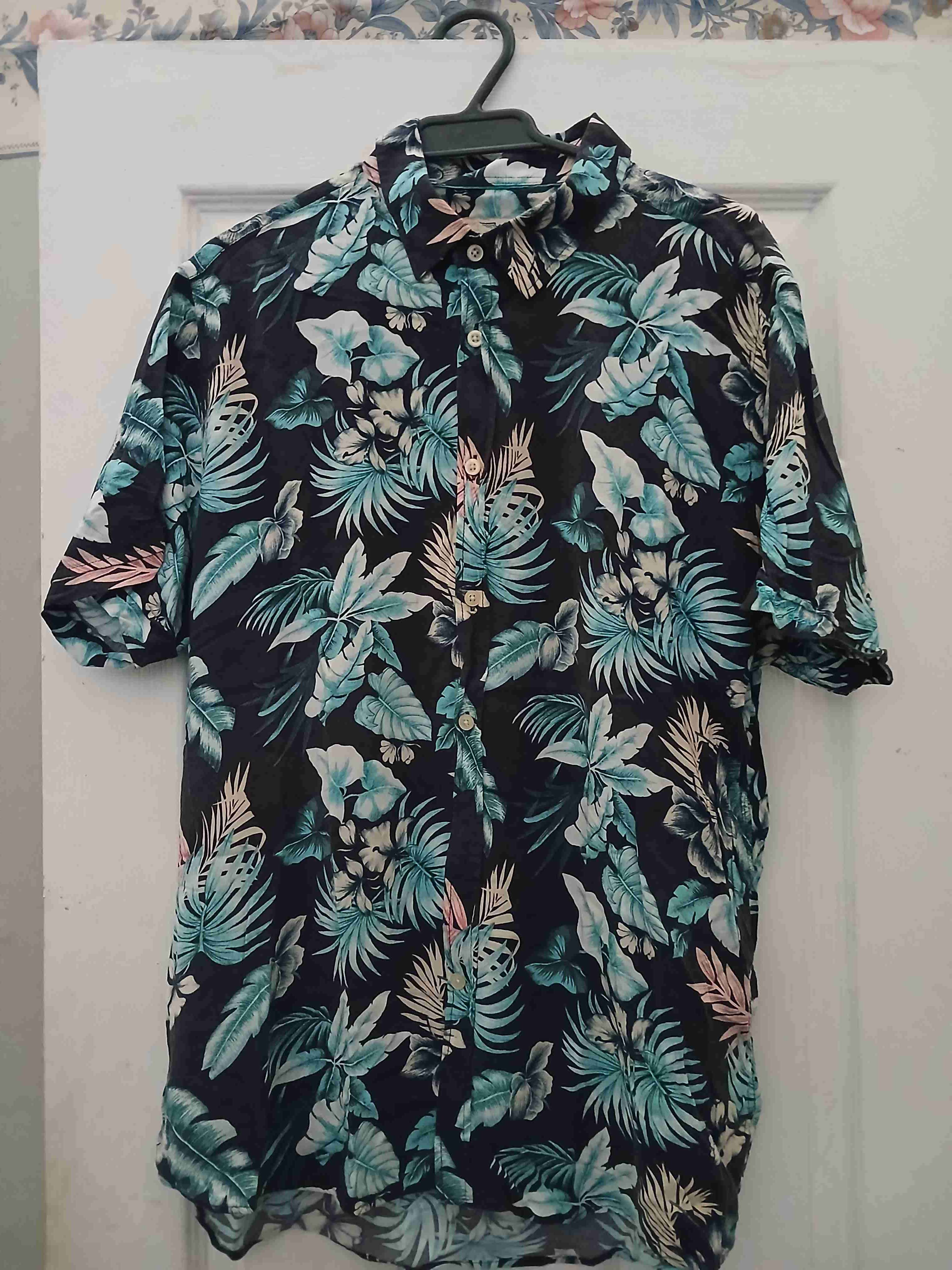 3 Camisas con diseño floral tropical, ideal para el verano. En buen estado, perfecta para ocasiones casuales.