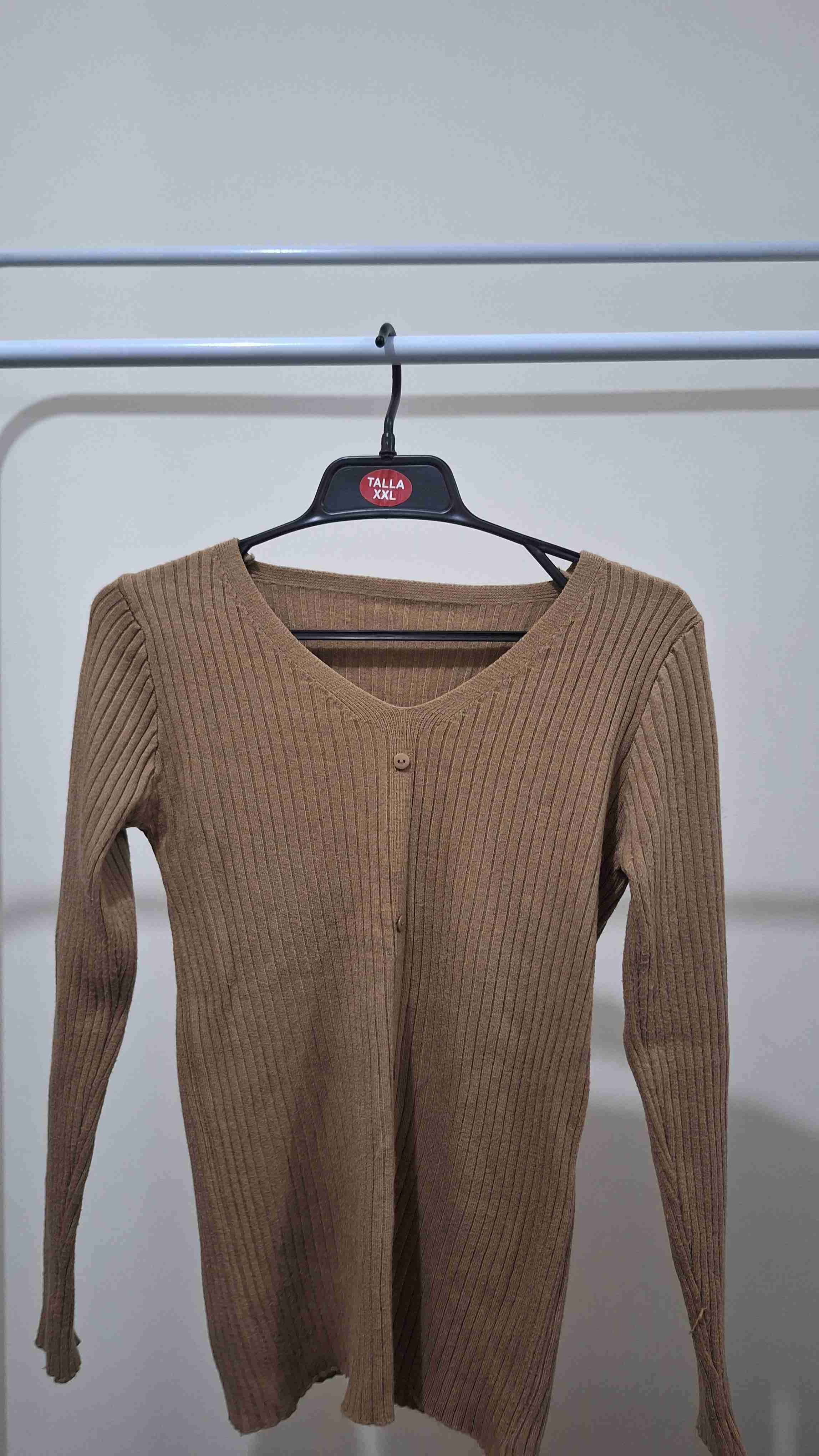 Chaleco de punto canalé en color café. Ideal para días frescos. Buen estado con signos leves de uso. PRECIO CONVERSABLE
