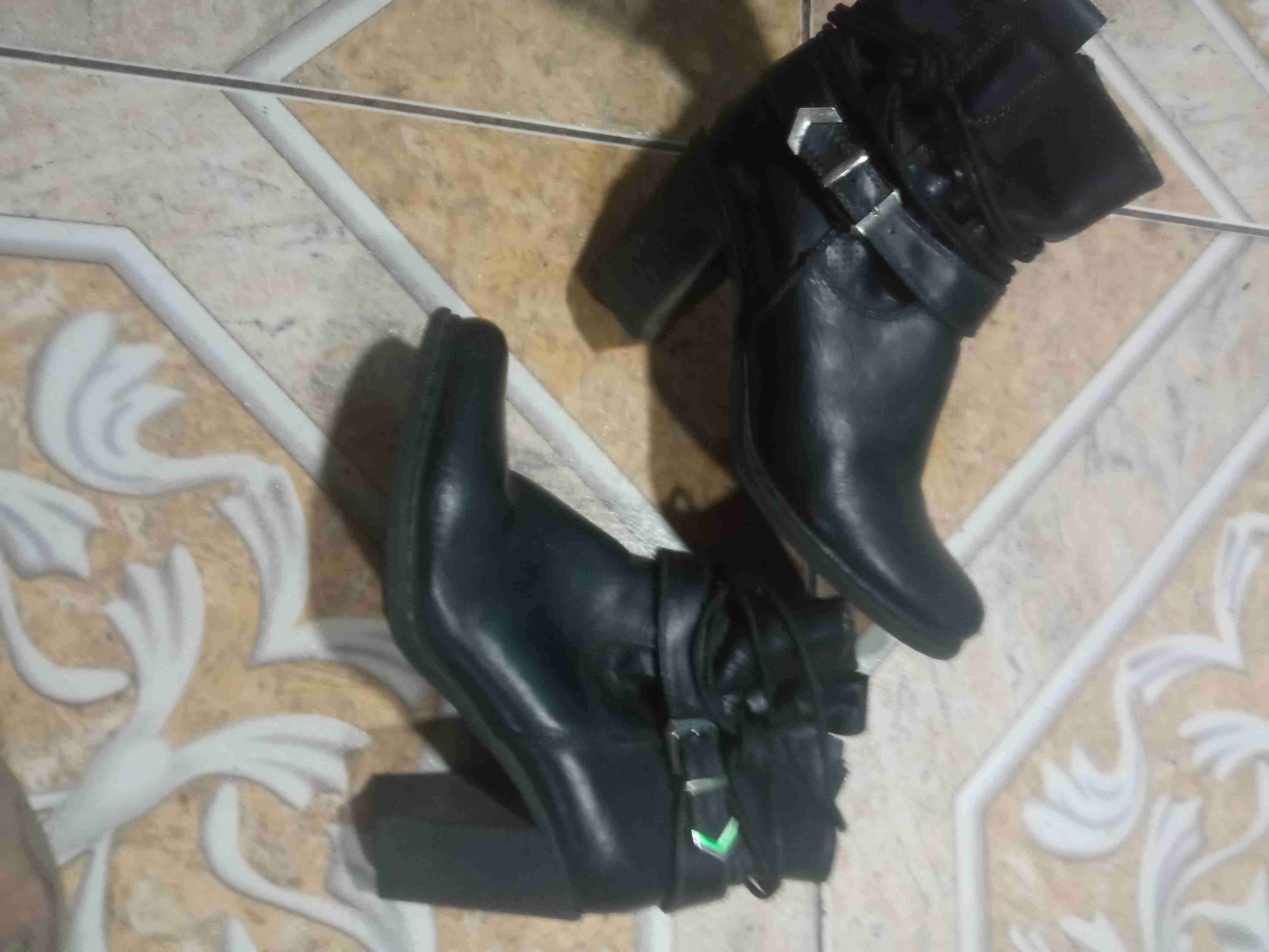Botines de cuero negros con detalles metálicos, en buen estado para un look casual o formal.