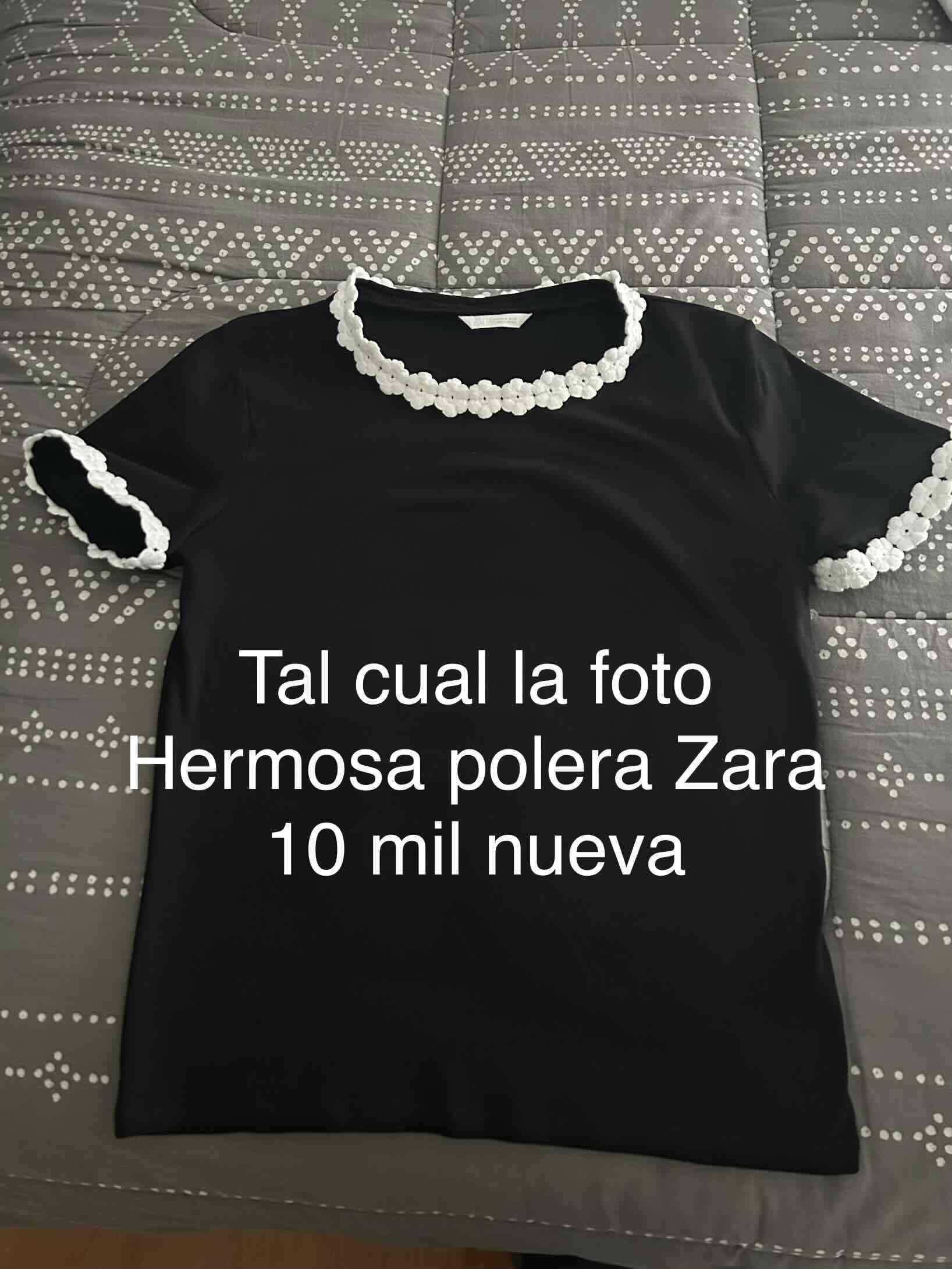 Elegante polera negra con bordes blancos, perfecta para ocasiones casuales. En excelente estado. Es Zara XL pero da a un L