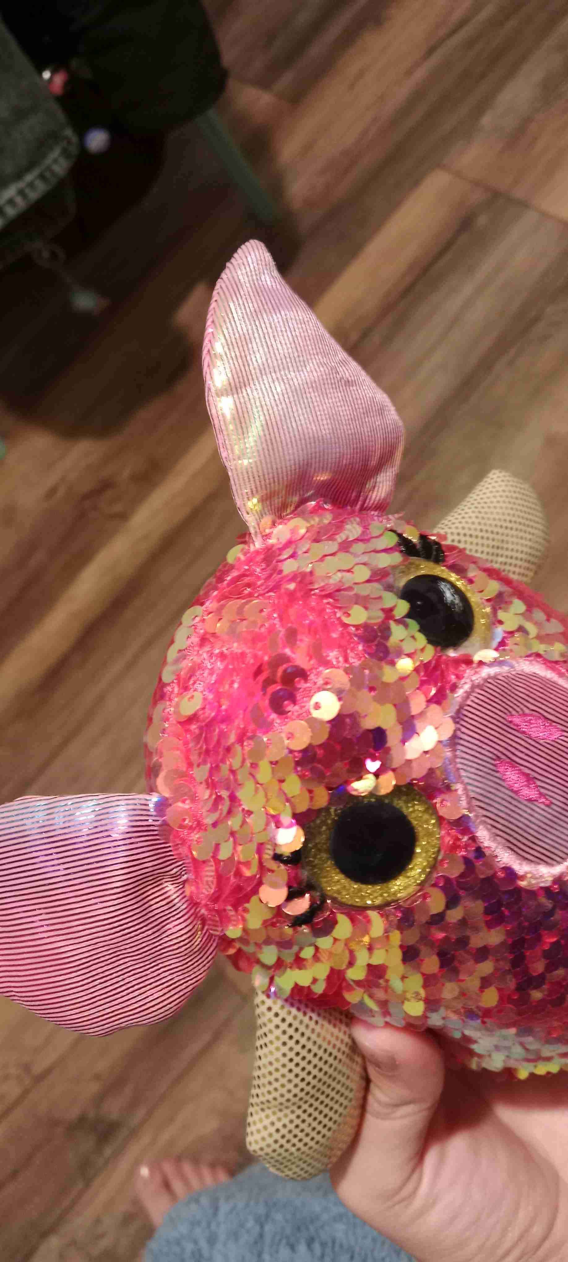 Peluche con lentejuelas coloridas. Sirve para niños con déficit de atención y tea porque mueven las lentejuelas haciendo formas. Buen estado general, ideal como regalo o decoración.