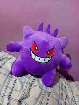 Peluche morado con una gran sonrisa. Ideal para decoración o regalo. Se encuentra en buen estado.