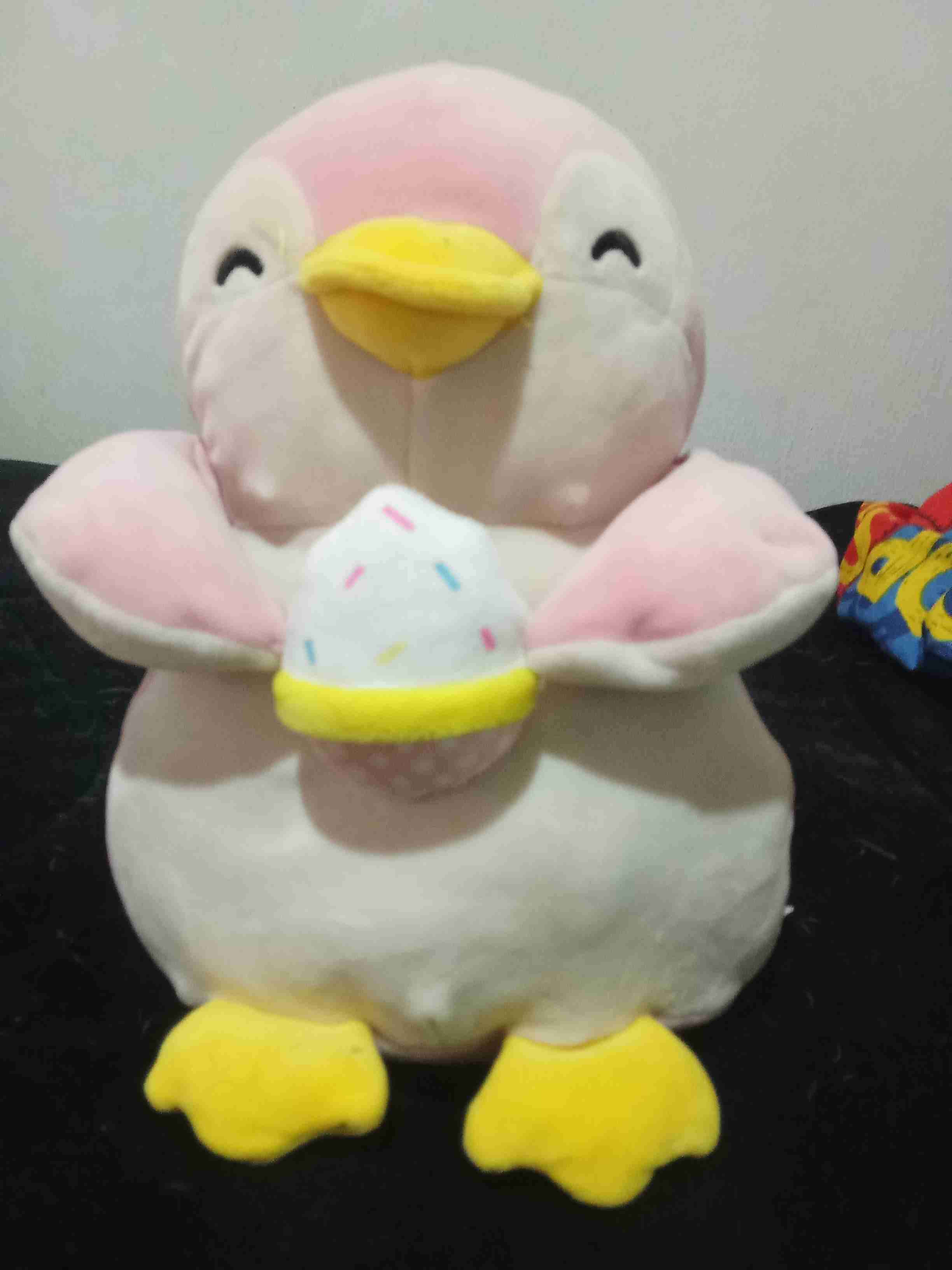 Adorable peluche de pingüino rosa con detalle de helado. Ideal para decorar o regalar.