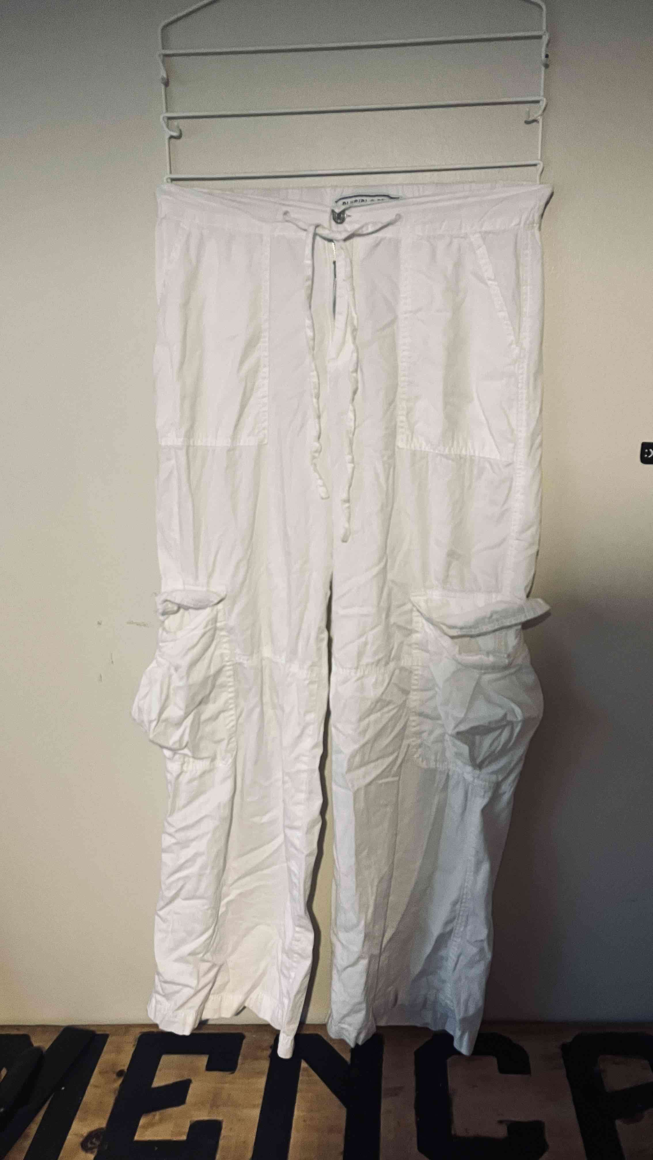 Pantalones cargo blancos con múltiples bolsillos, perfectos para un look casual. Buen estado general.
