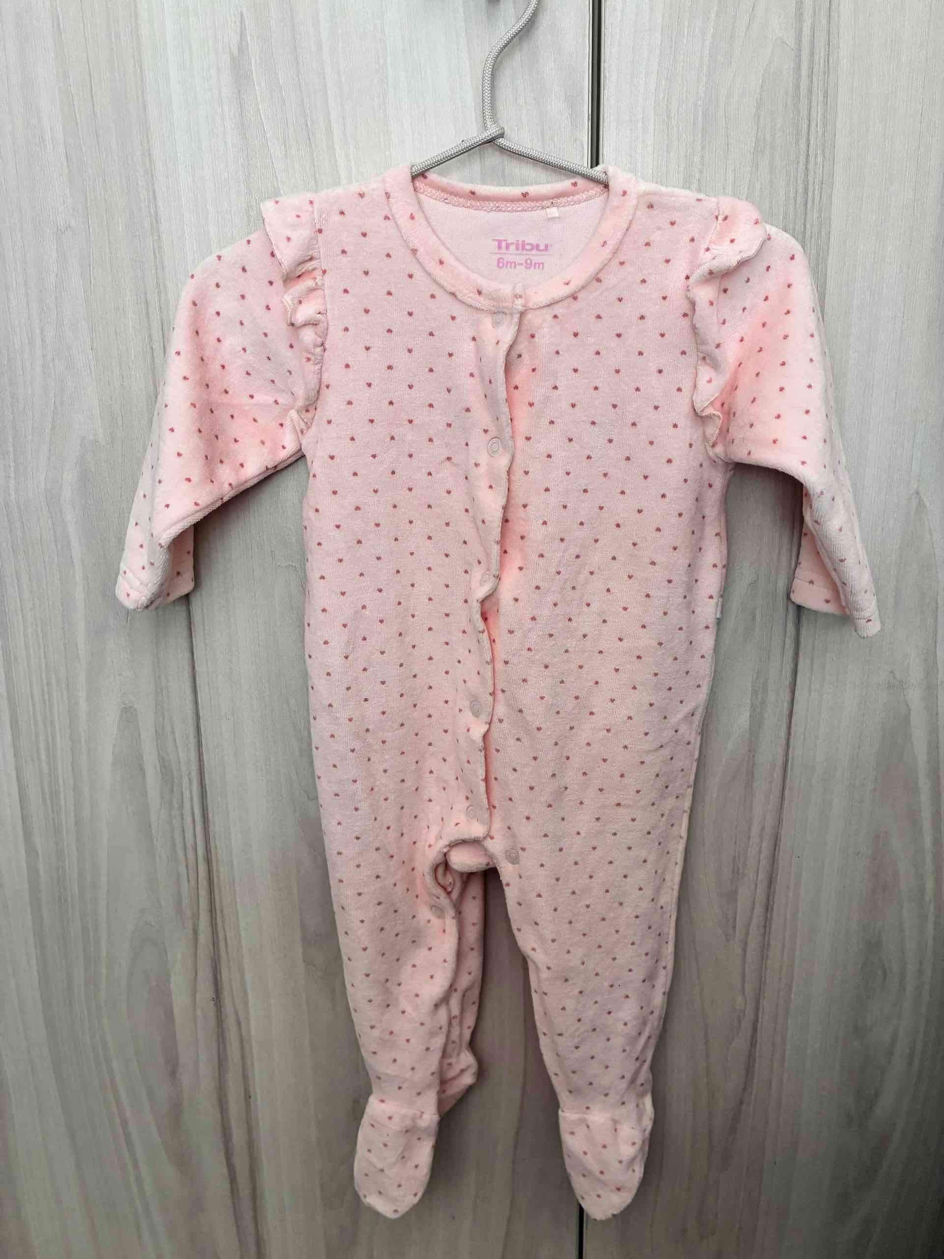 Dulce pijama rosado y blanco con puntos, ideal para bebés de 6 a 9 meses. Suave y cómodo para el descanso. Solo fue lavado y los dos por el precio en mención.
