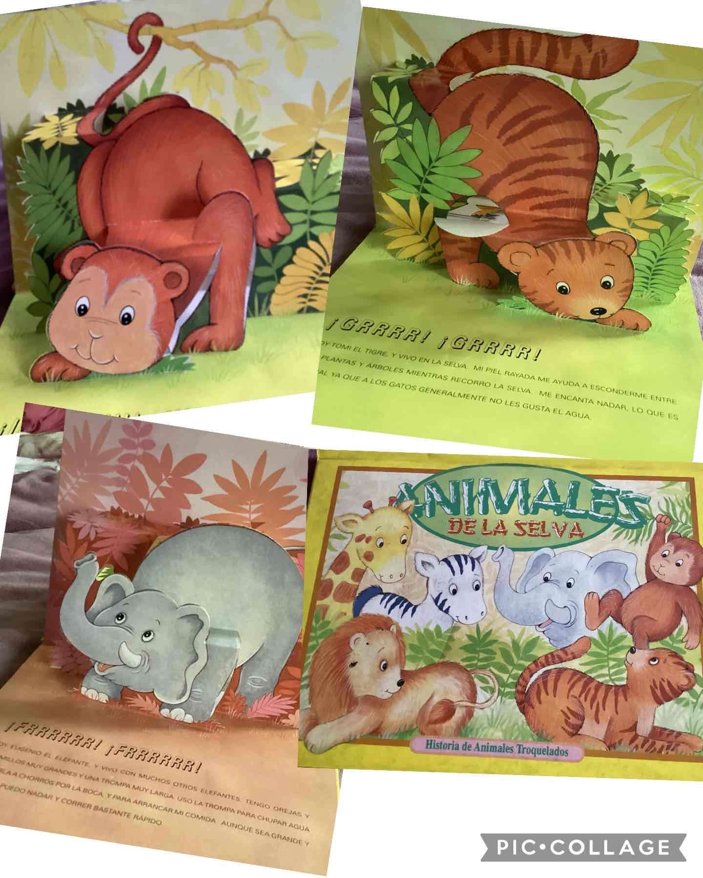 Libro infantil pop-up con animales de la selva. Ideal para estimular la imaginación de los niños. En buen estado.