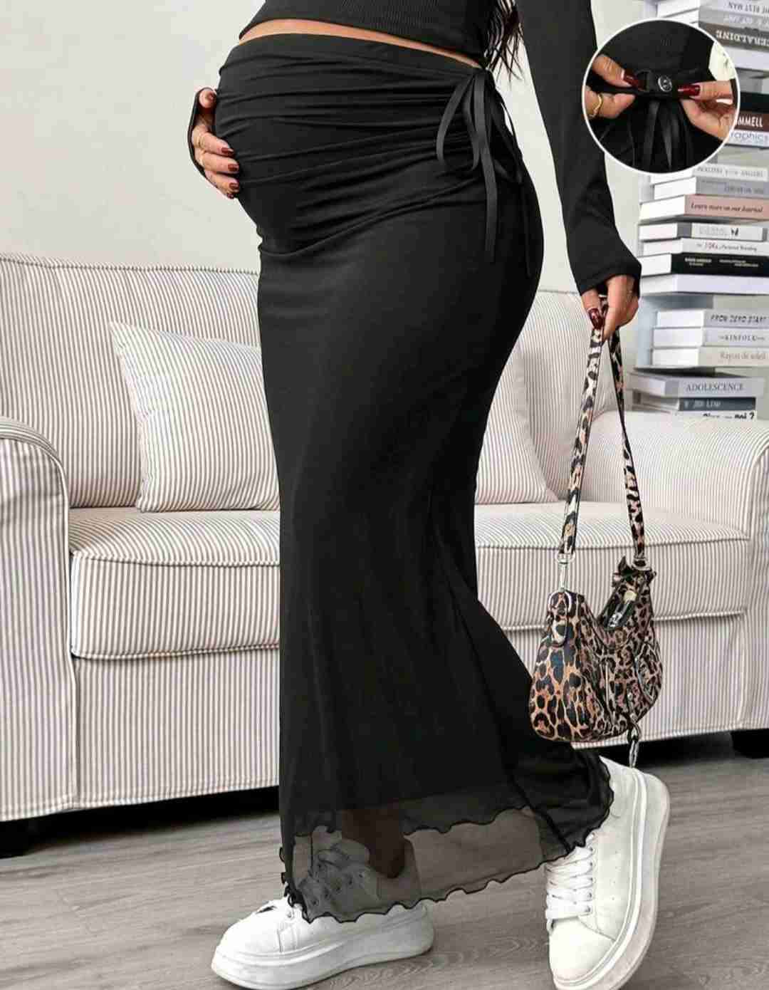 Falda negra ajustable para embarazadas. Estilo cómodo y moderno, ideal para uso diario. Talla 2XL, marca Shein