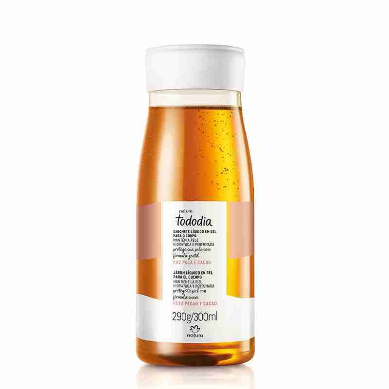 Jabón en gel para el cuerpo de nuez pecán y cacao. Mantiene la piel hidratada y perfumada. Nunca usado.