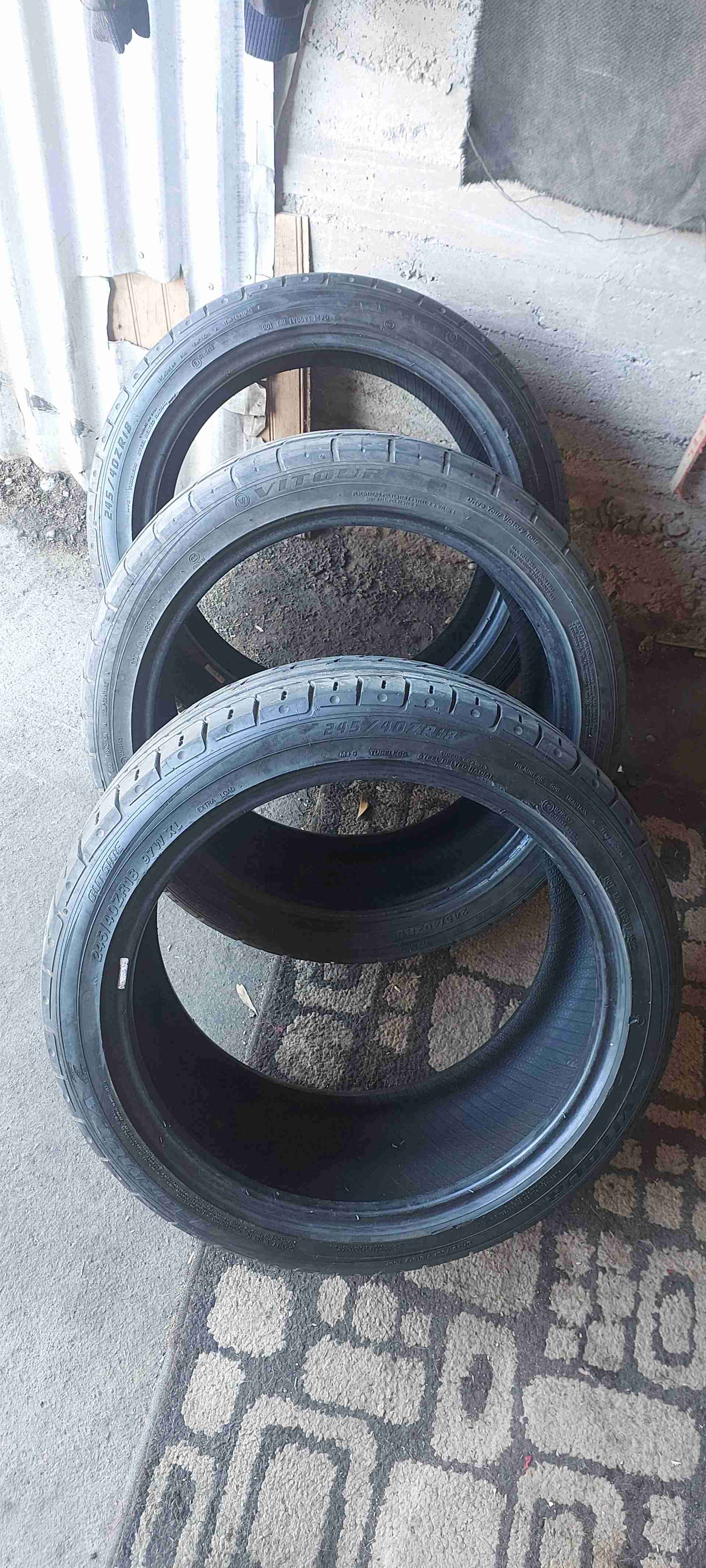 Tres neumáticos usados en buen estado, ideales para auto deportivo. Medida 245/40ZR18 con leve desgaste.