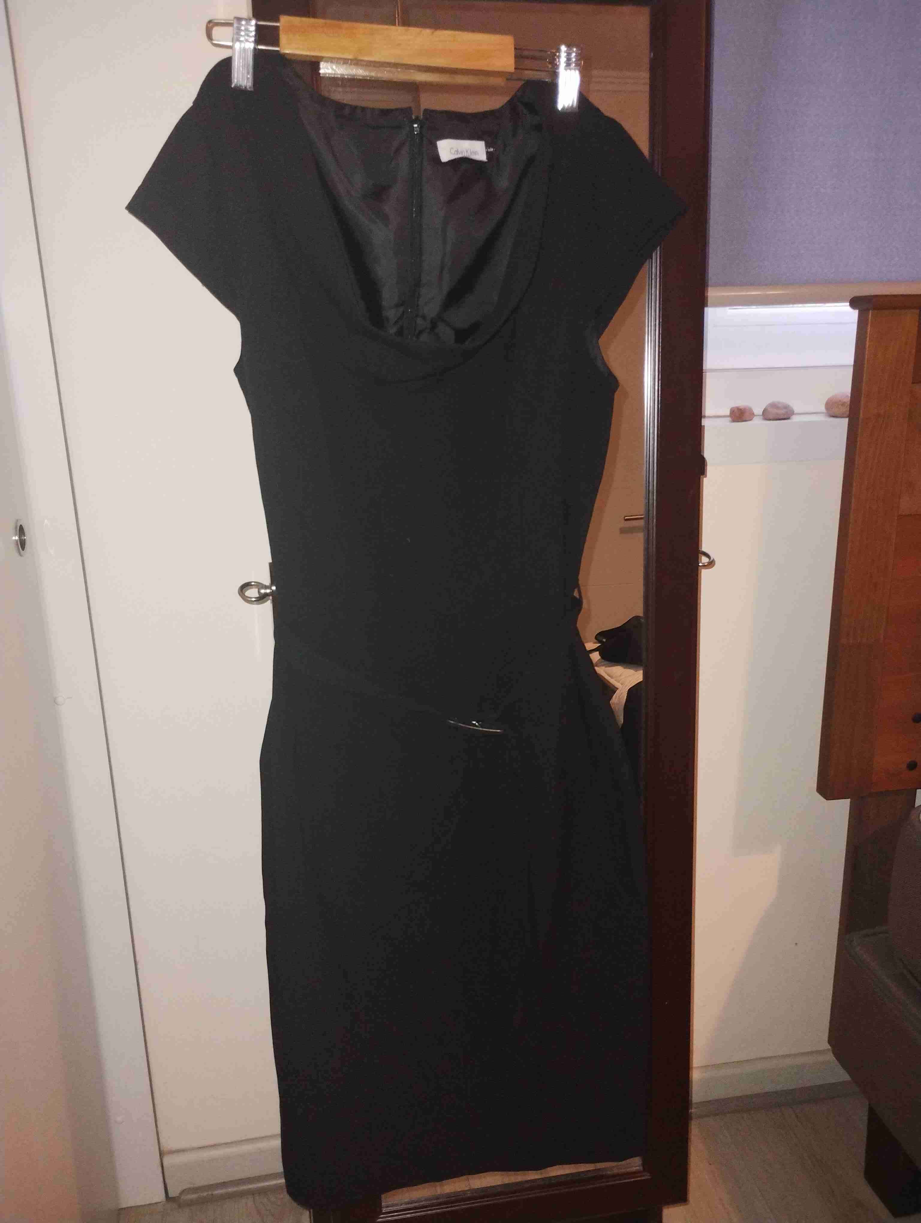 Vestido negro sin mangas, ideal para ocasiones formales. Buen estado general, con leve uso.marca Calvin Klein Talla 40