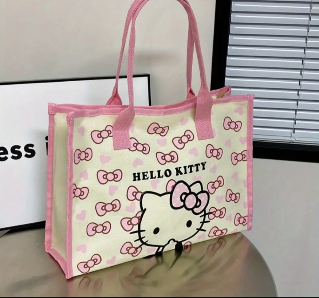 Bolso estilo tote con diseño de Hello Kitty en tonos rosados. Ideal para uso diario y llevar tus cosas con estilo.
