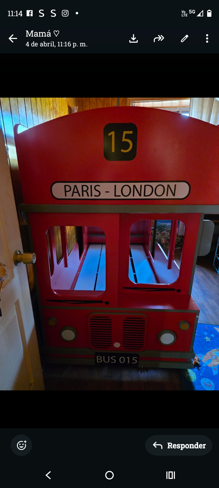 Divertida cama en forma de autobús rojo, ideal para habitación infantil. En buen estado general, perfecta para estimular el juego y la imaginación.