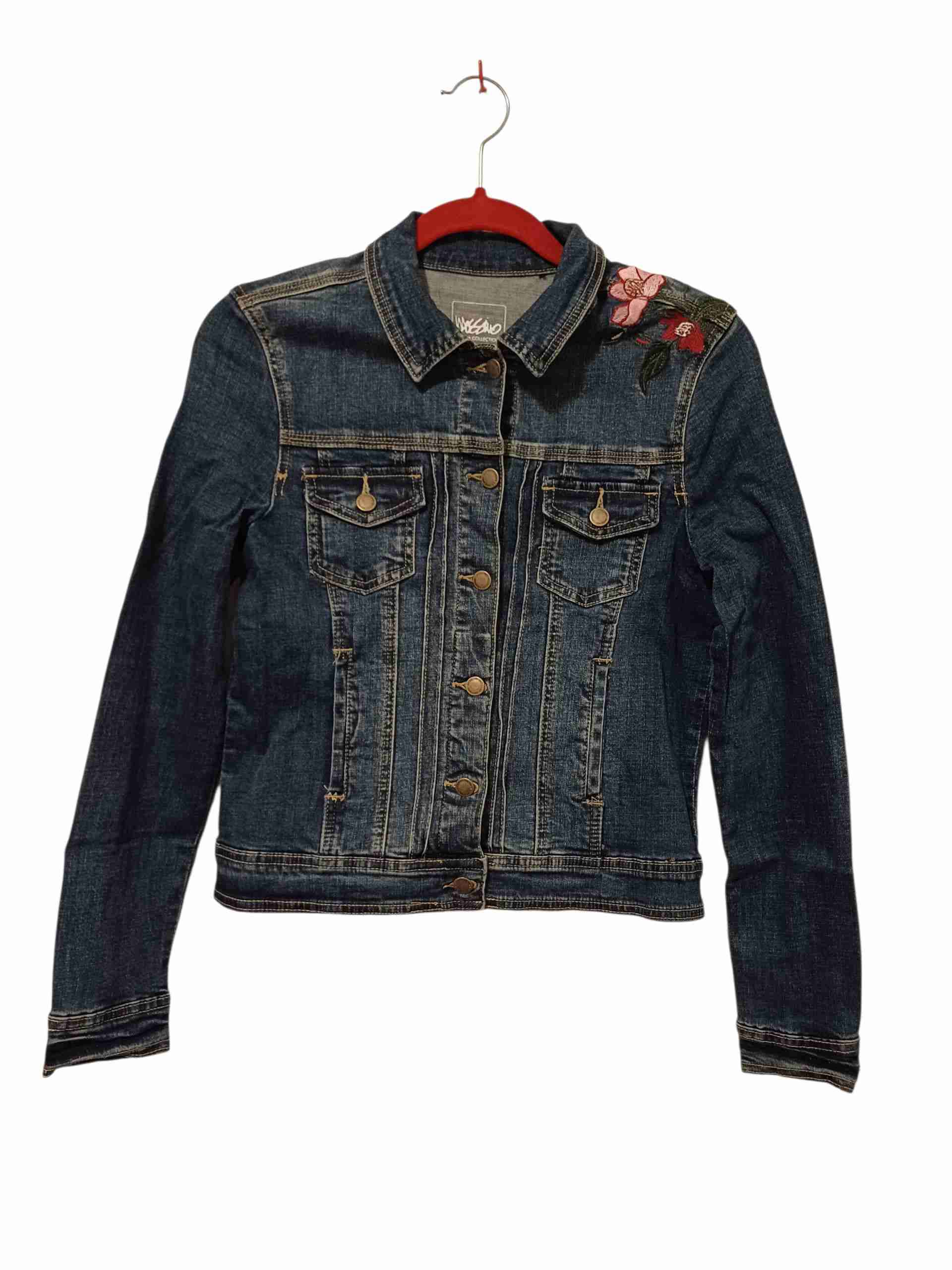 Chaqueta de mezclilla con detalles bordados. En buen estado, ideal para uso diario y casual.
