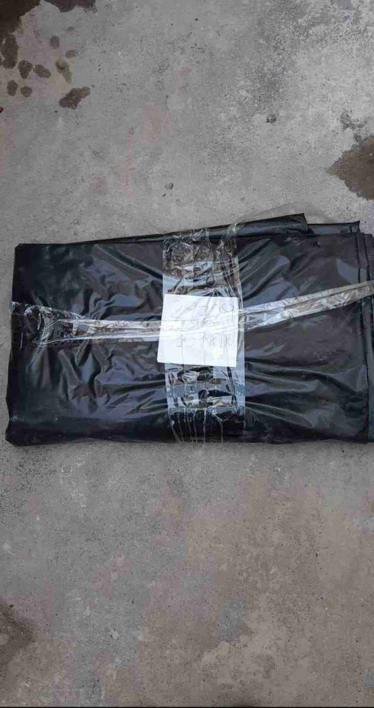 plástico negro de gran tamaño, ideal para cubrir superficies en proyectos de construcción. En buen estado. 10metro x 7m