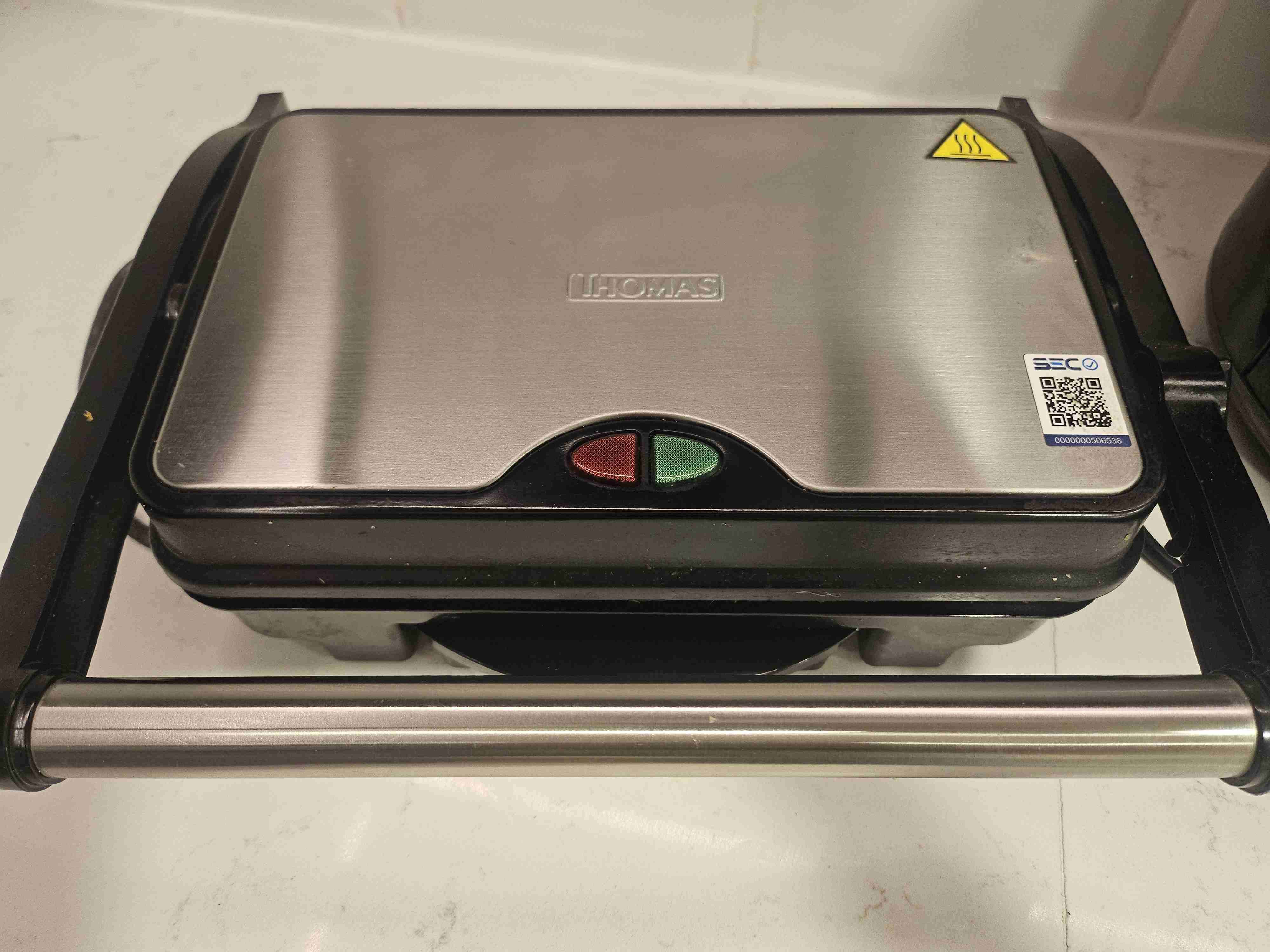 Plancha eléctrica ideal para paninis o pan de molde . Diseño compacto, perfecta para la cocina.