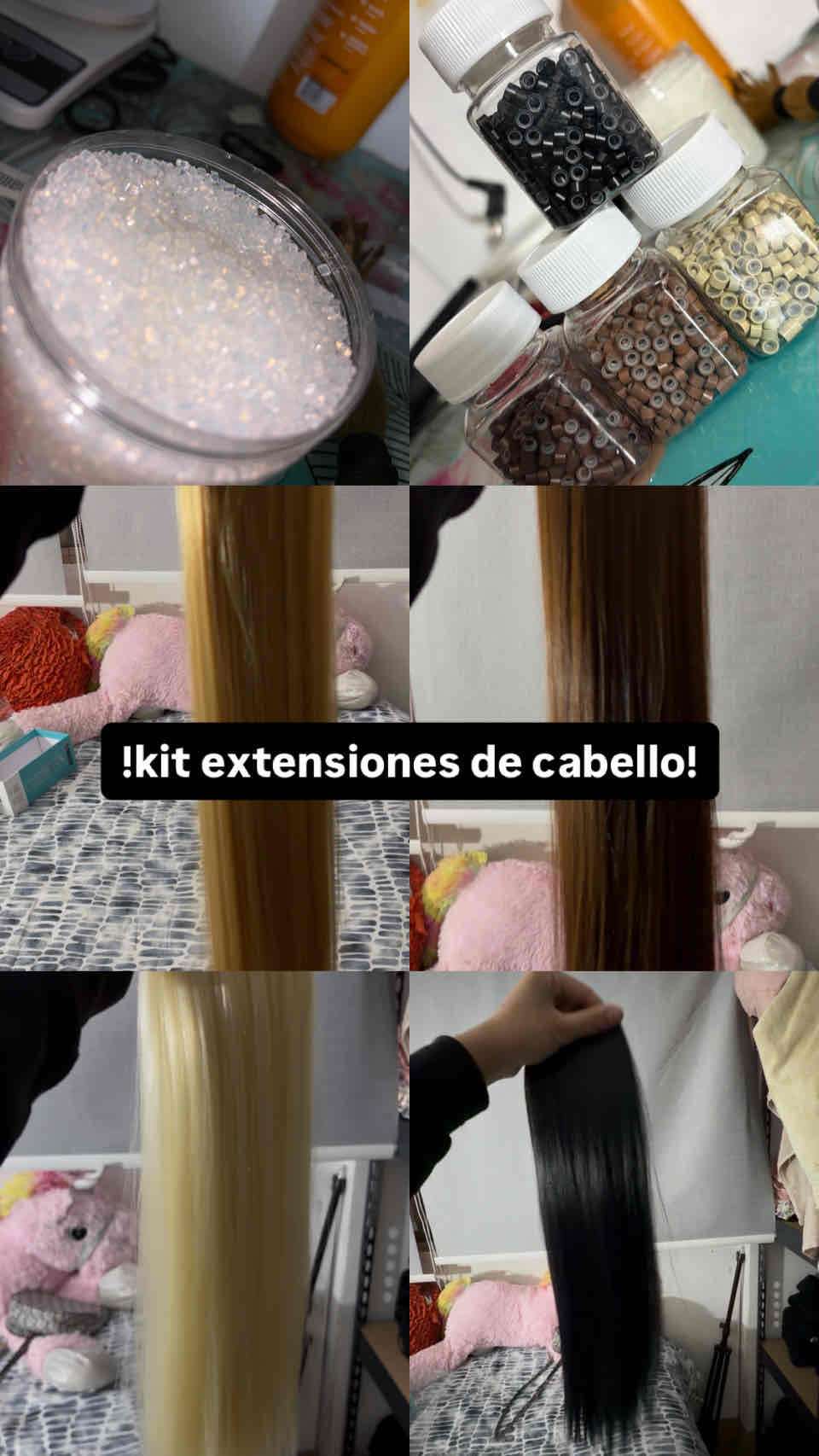 Kit de extensiones de cabello colombiano con variedad de colores de cabello y productos de alta calidad para empezar en el mundo de la estetica, precio comversable