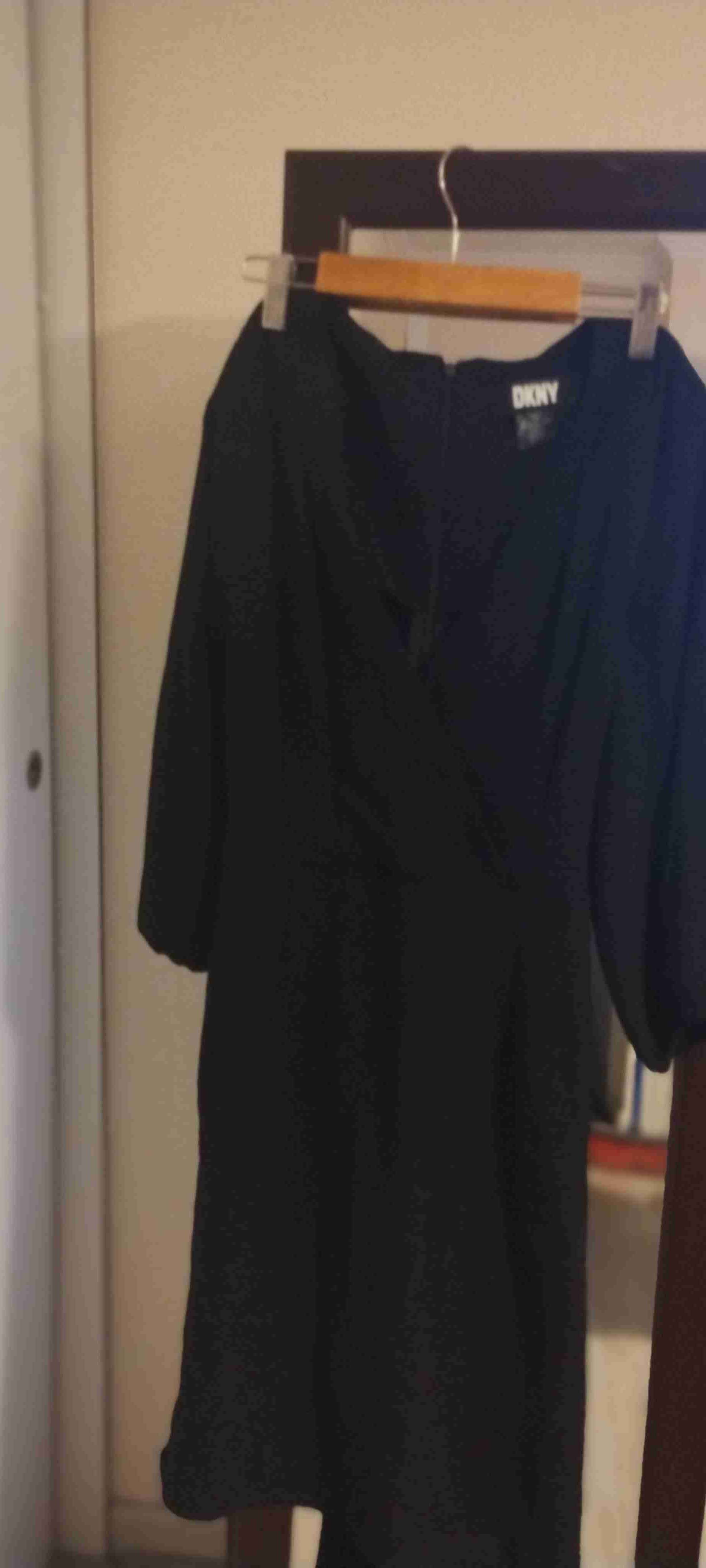 Elegante vestido negro DKNY, ideal para ocasiones formales. En buen estado y listo para usar.talla 40.