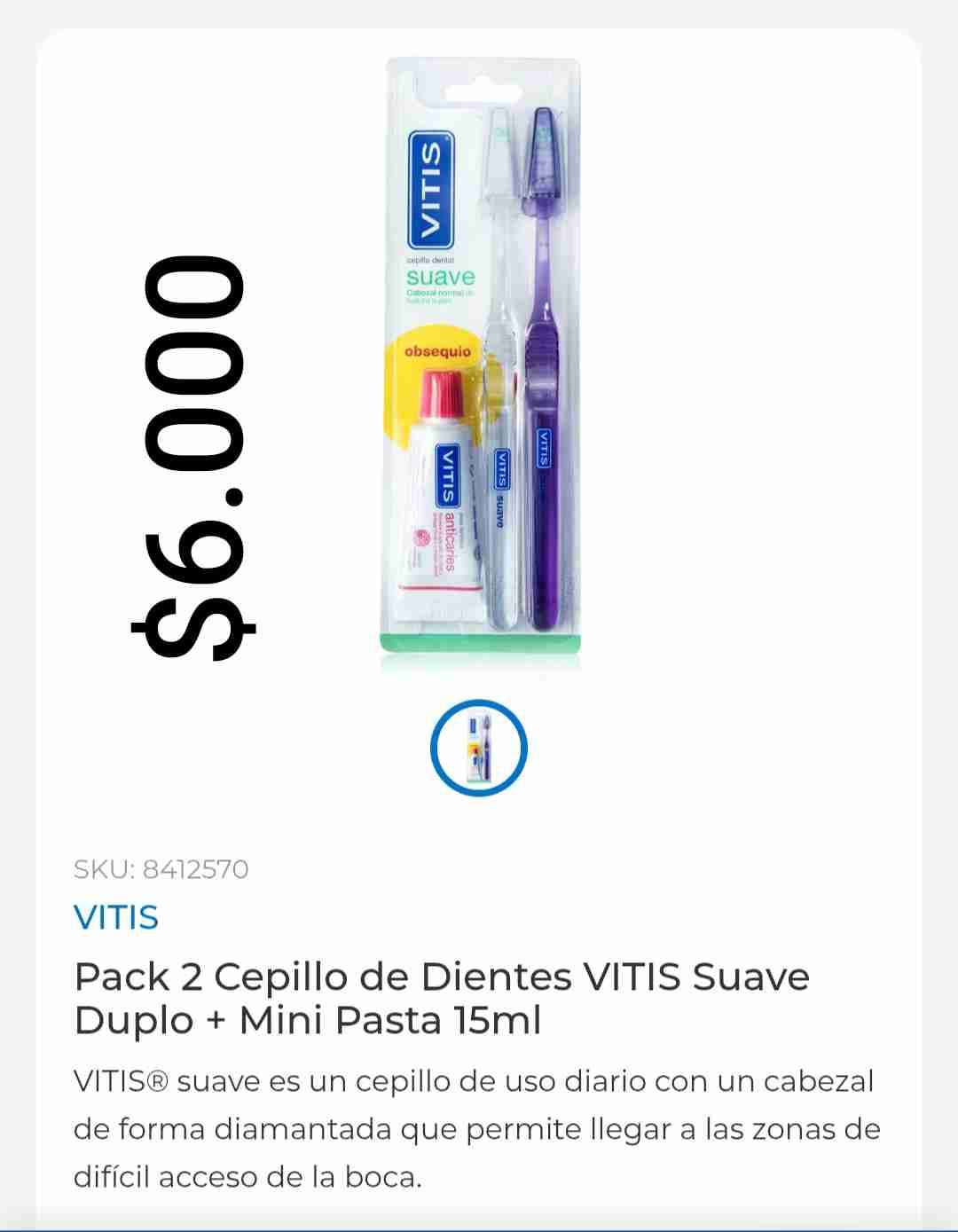 Pack de dos cepillos de dientes VITIS suave con mini pasta de 15ml. Ideal para el cuidado diario dental.