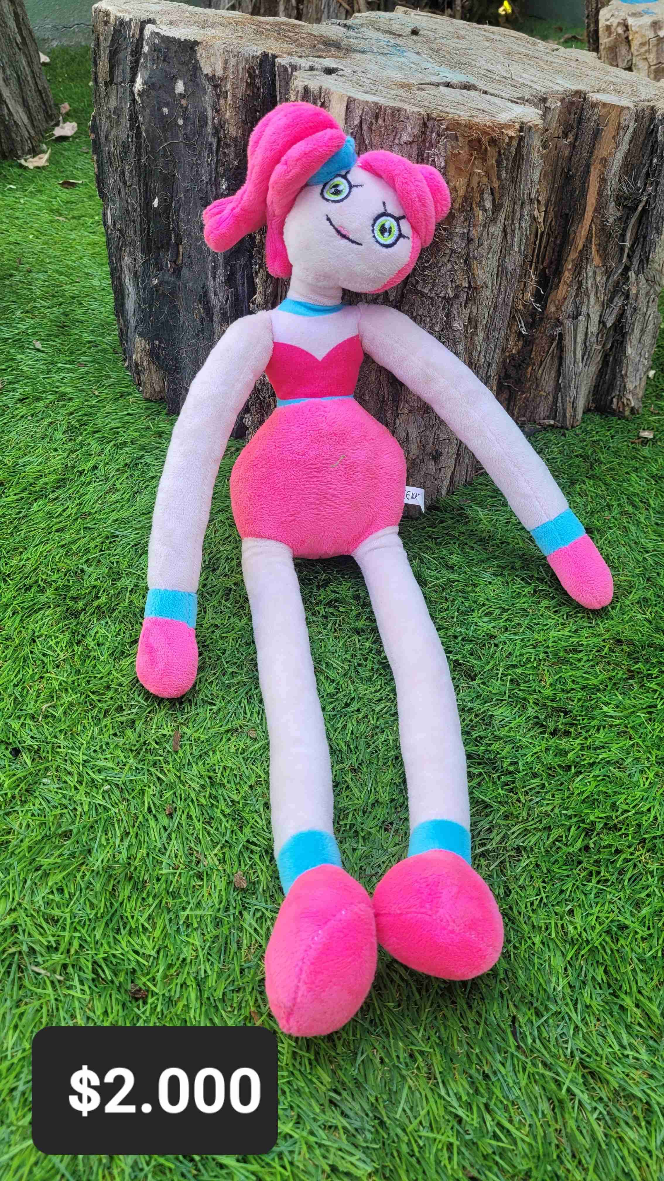 Muñeca de peluche en tonos rosa y azul, ideal para decorar o jugar. En buen estado general, con leves signos de uso.