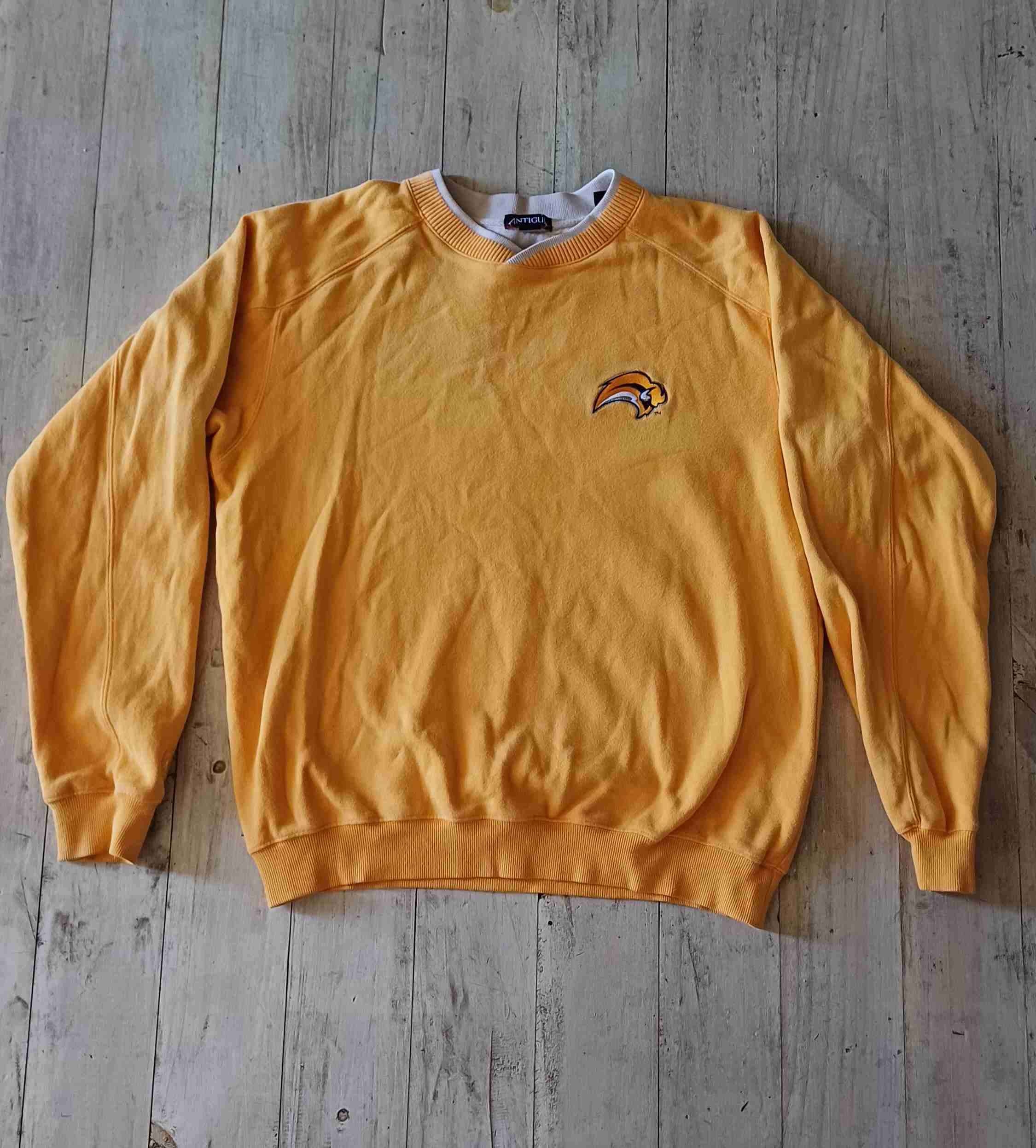 Polerón de segunda mano, color amarillo con discreto logo en el pecho. Buen estado. Es oversize puede ser para hombre o mujer. Precio conversable.