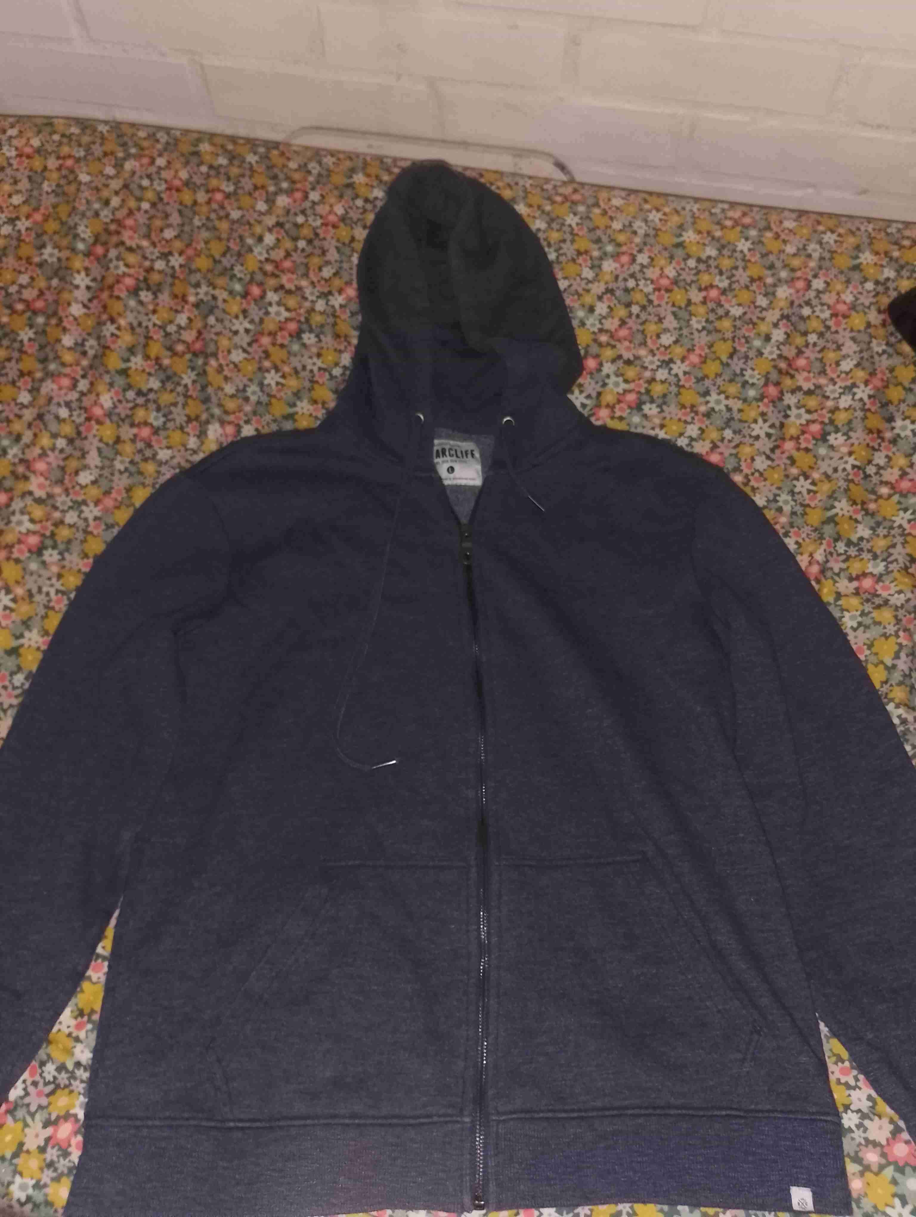 Polerón Bearcliff de hombre azul marino, estilo casual con capucha. En buen estado general, ideal para el día a día. Talla L.