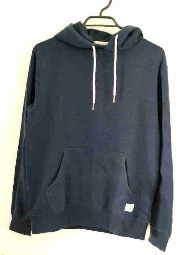 Polerón azul marino con capucha y bolsillo delantero. Ideal para un look casual, está en buenas condiciones.