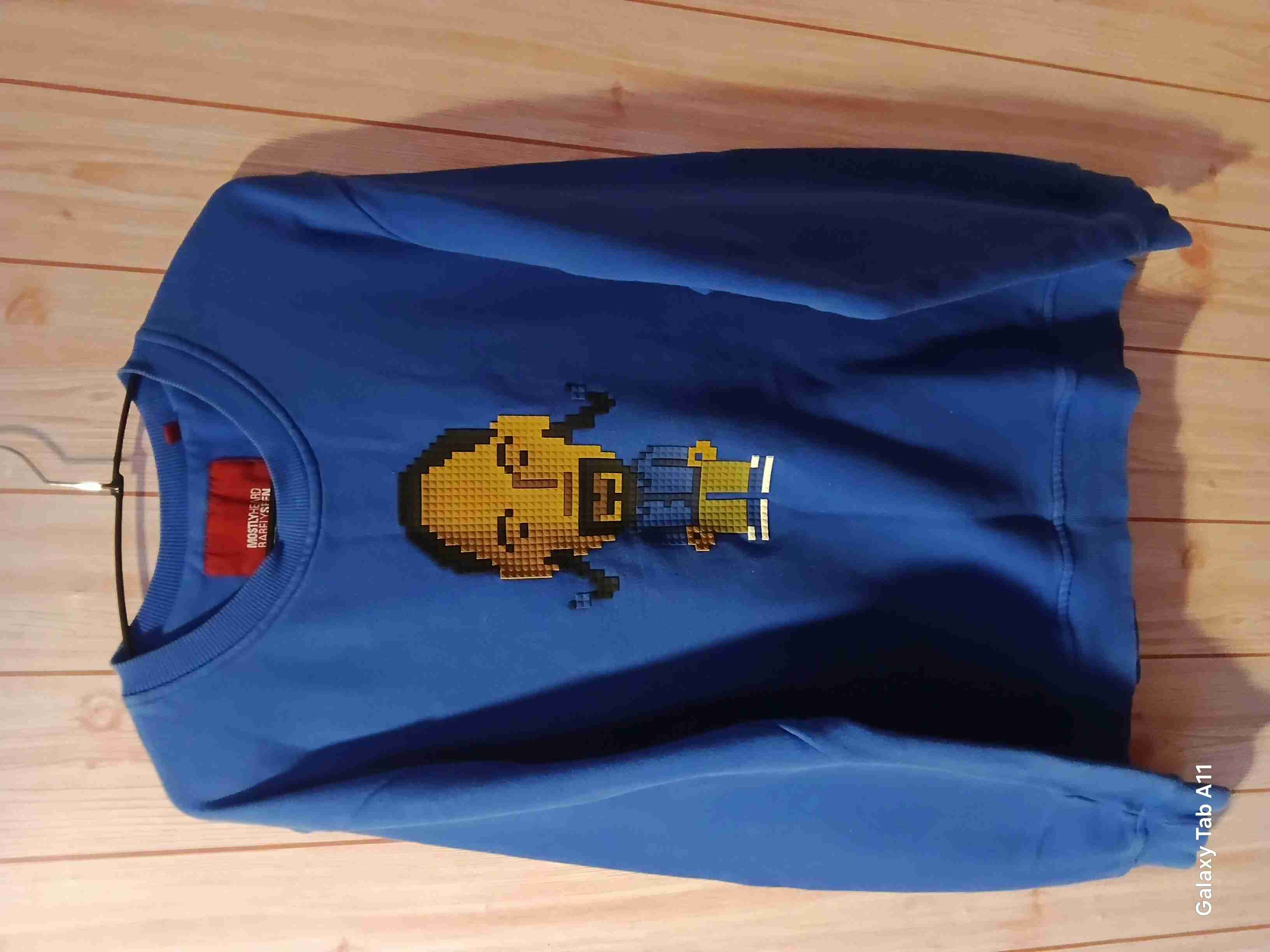 Polerón azul con diseño pixelado,8 Bit.Snoop Doog