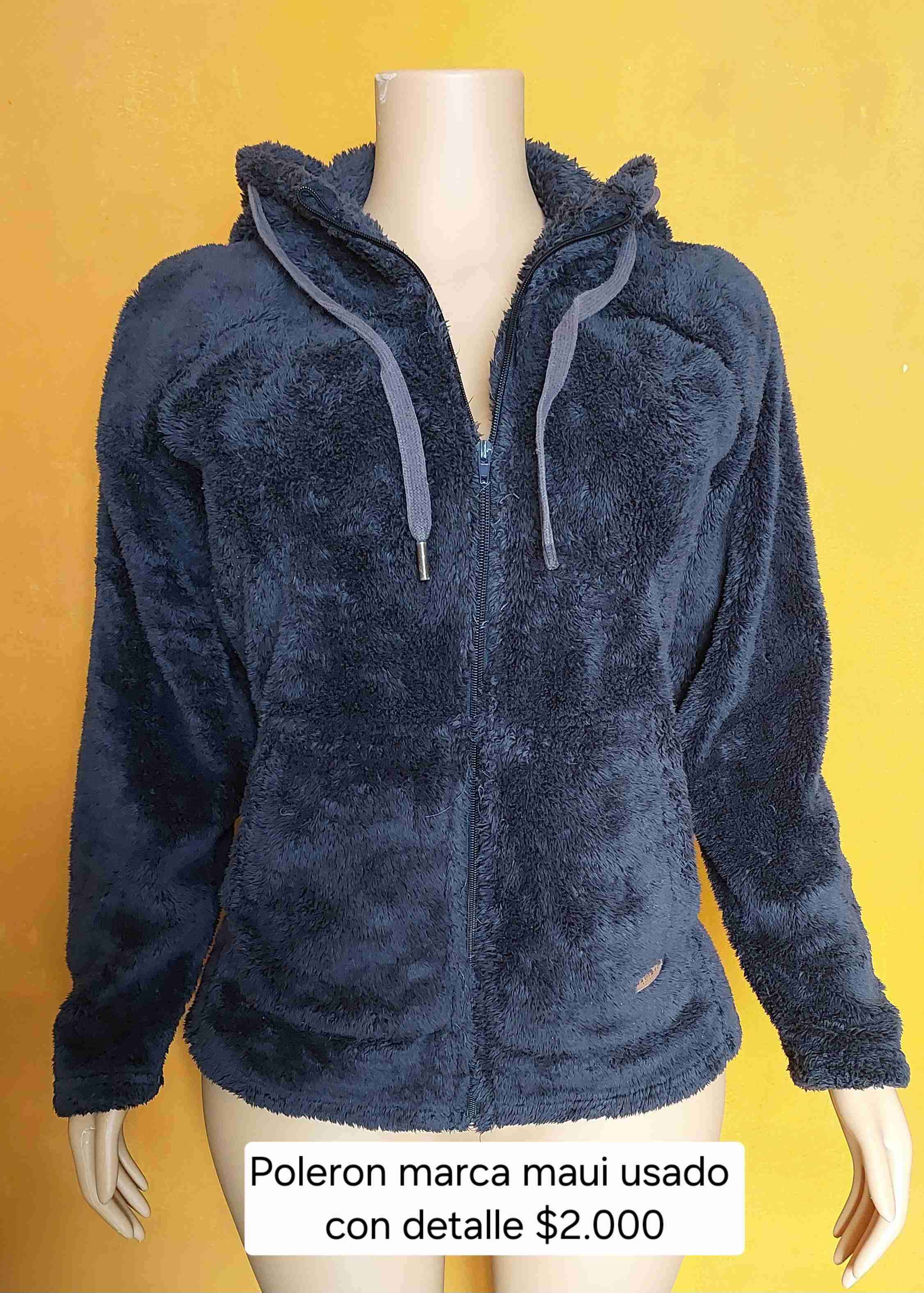 Polerón de felpa con cierre frontal y capucha, ideal para días fríos. En buen estado con detalles menores, el cierre no es el original. Talla M