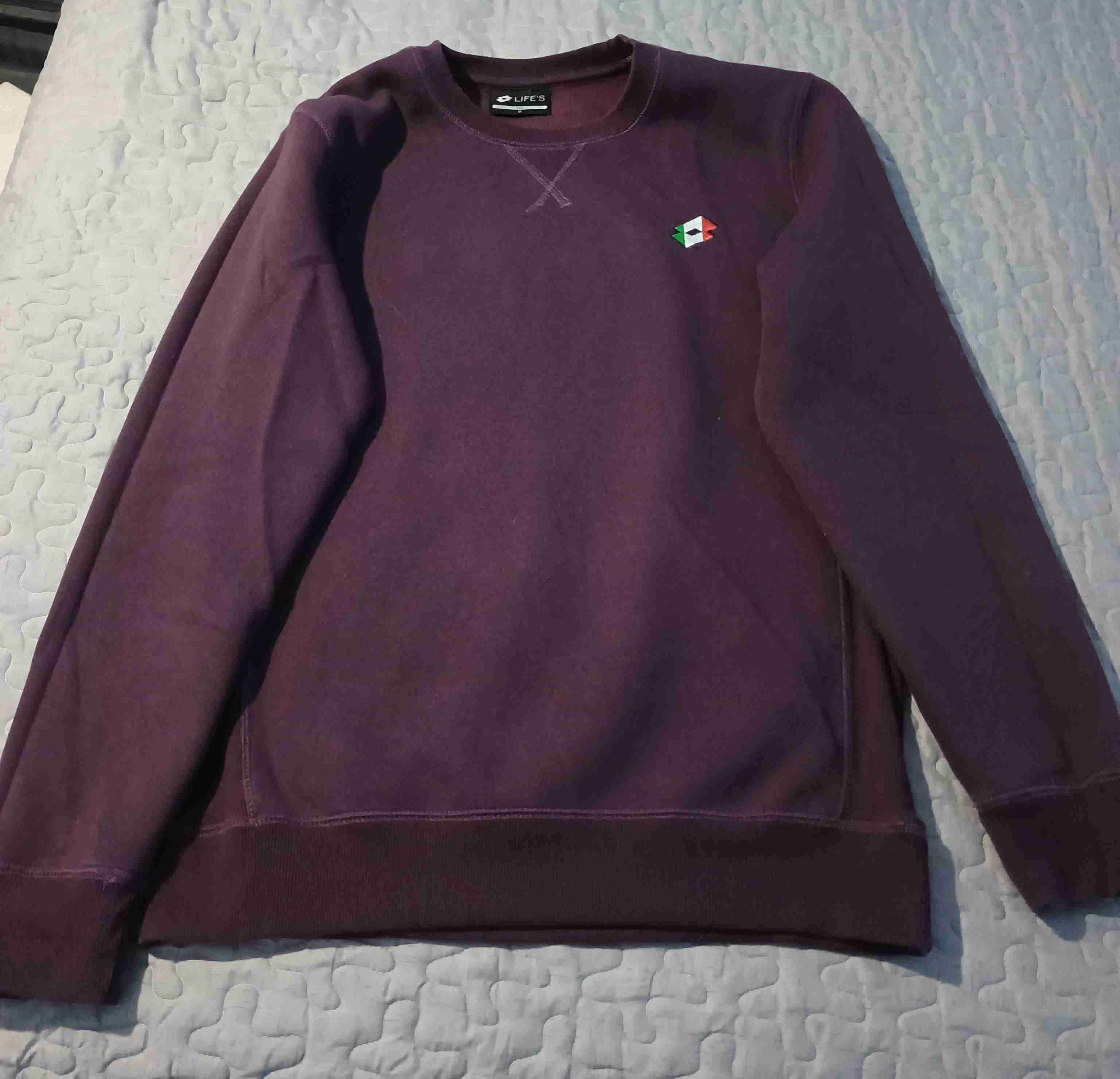 Polerón de color burdeo, ideal para uso casual. Tiene un pequeño logo bordado en el pecho. En buen estado no tiene ningún detalle. Talla M