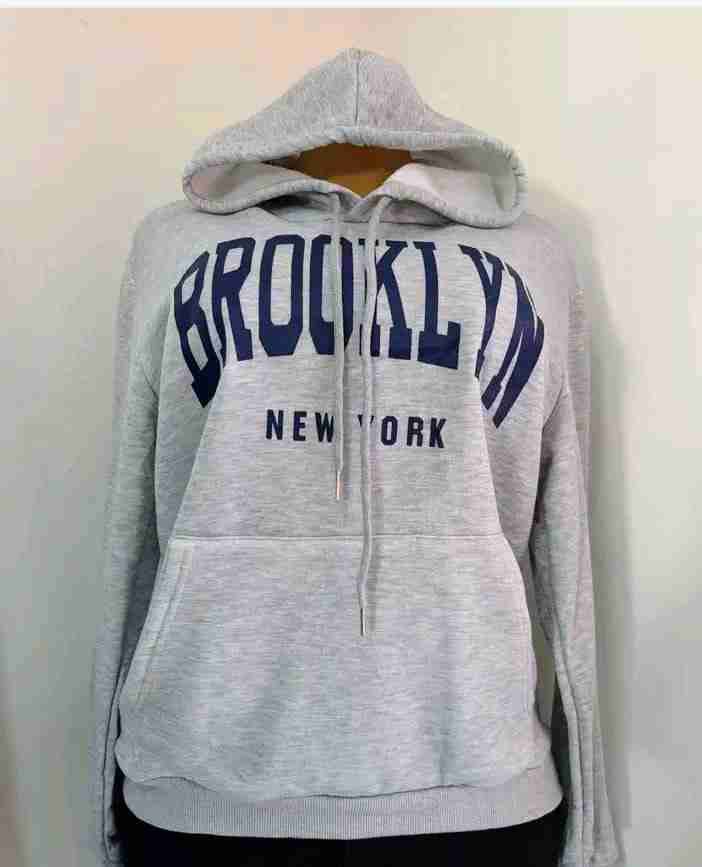 Cómodo polerón gris y verde con capucha Brooklyn, perfecto para looks casuales.