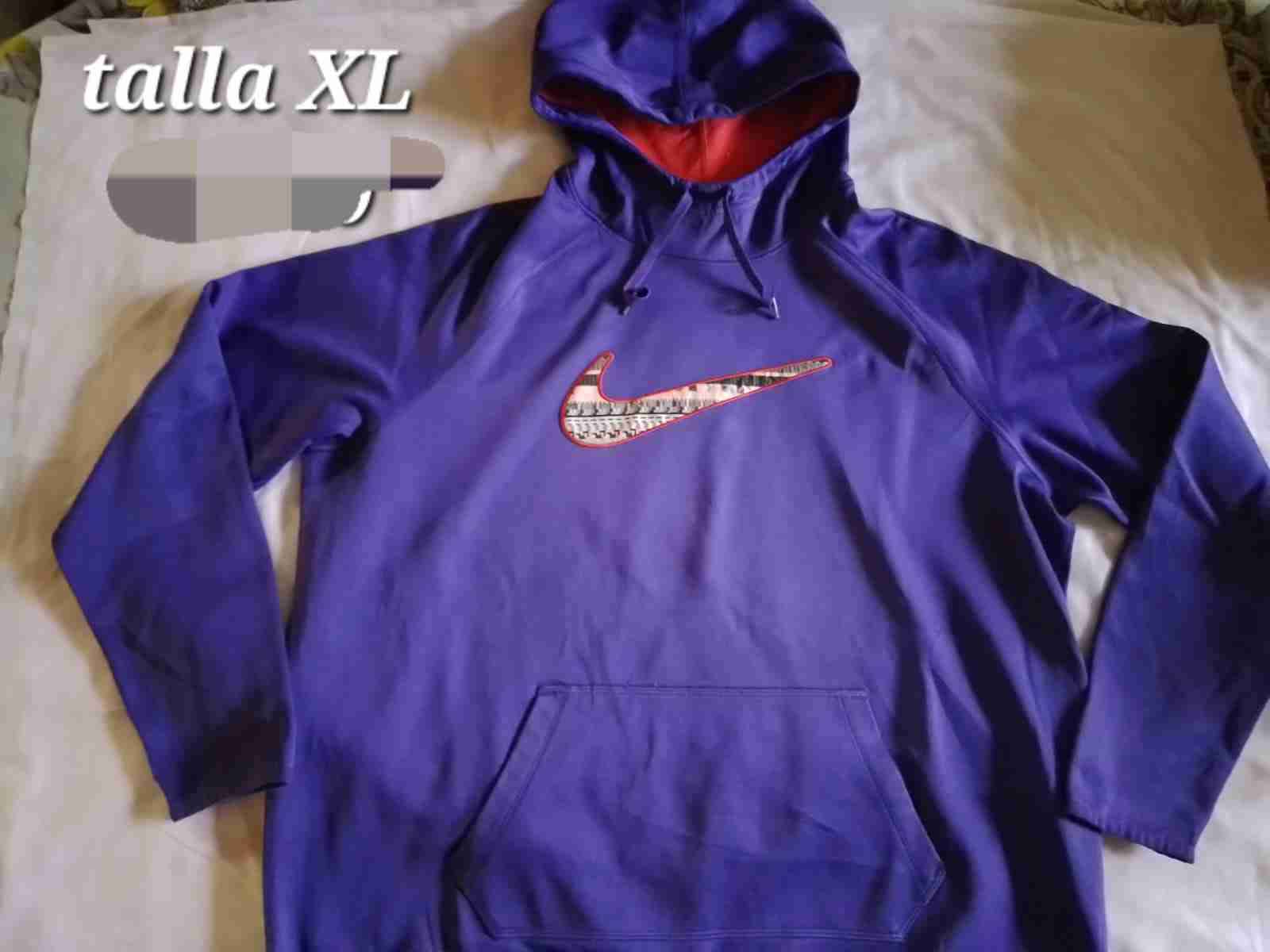 Polerón morado con capucha, ideal para el invierno. Talla XL con diseño atractivo al frente.