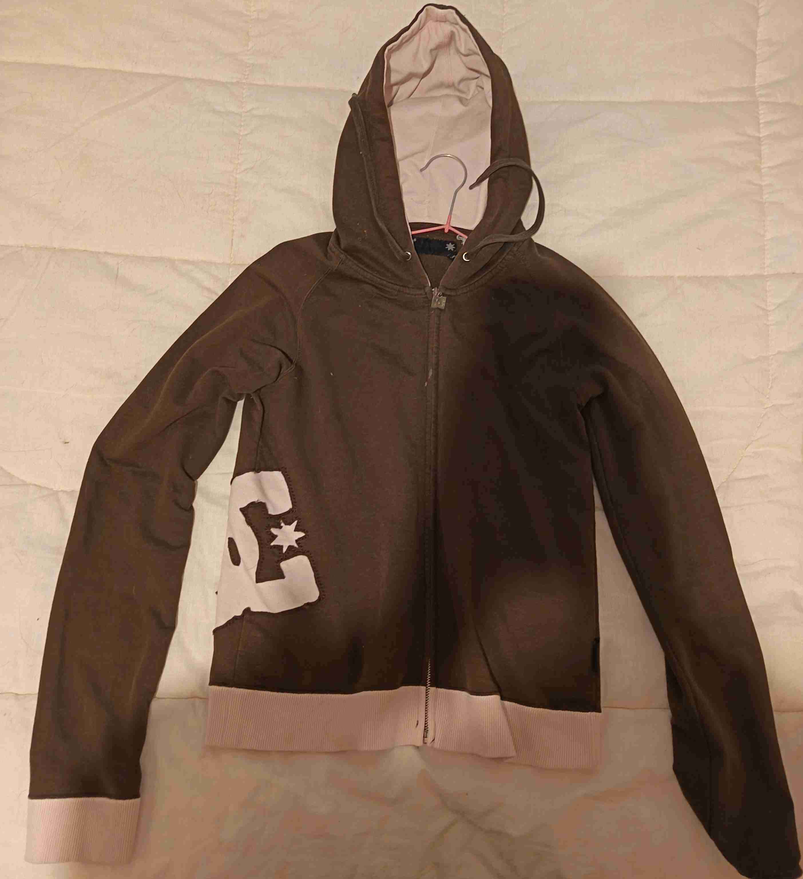 Polerón DC con capucha marrón y rosa
