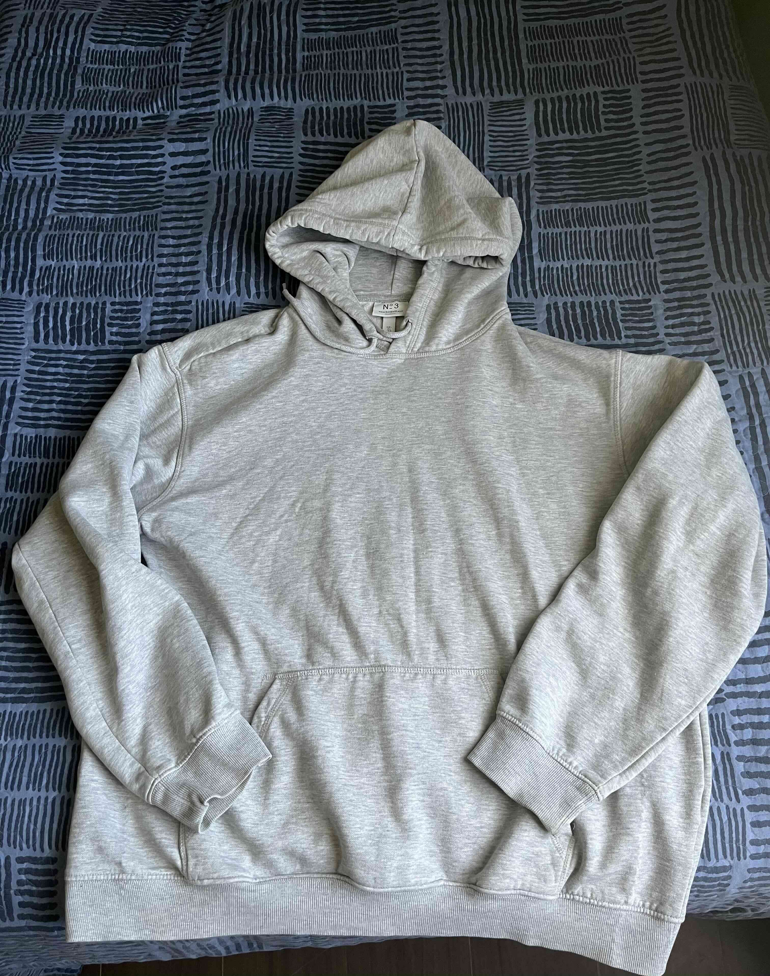 Polerón gris claro con capucha, estilo casual y cómodo. En buen estado con leves signos de uso.