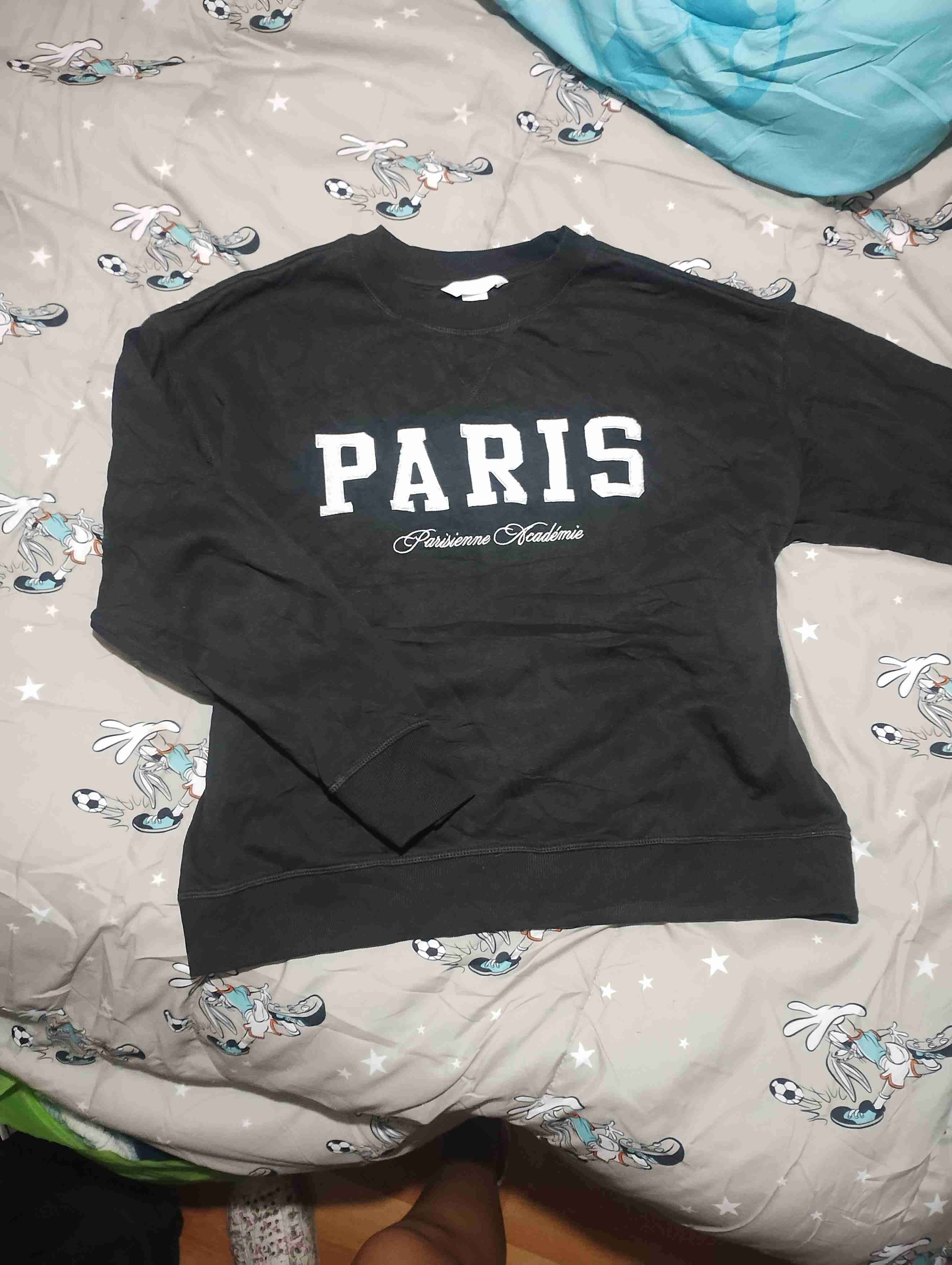 Polerón negro talla M Marca H&M con texto 'Paris' al frente, ideal para uso casual. Buen estado, algunos signos de uso.
